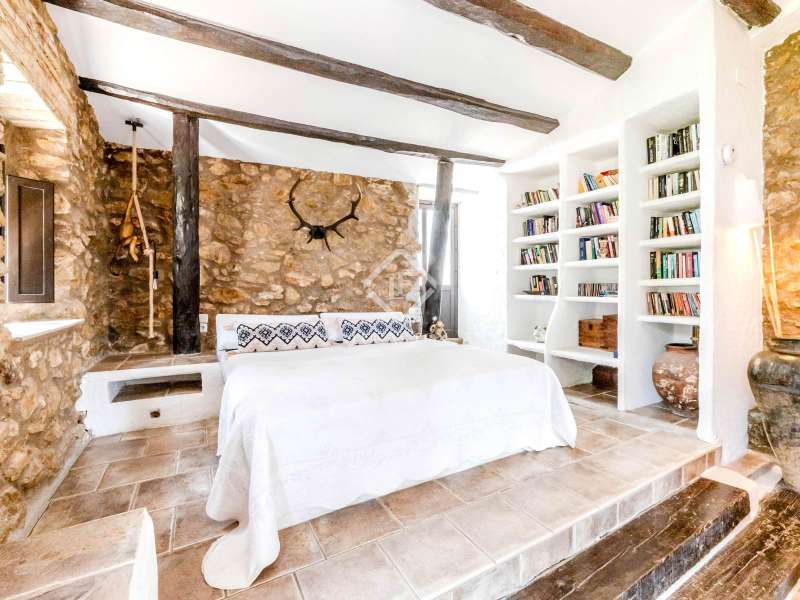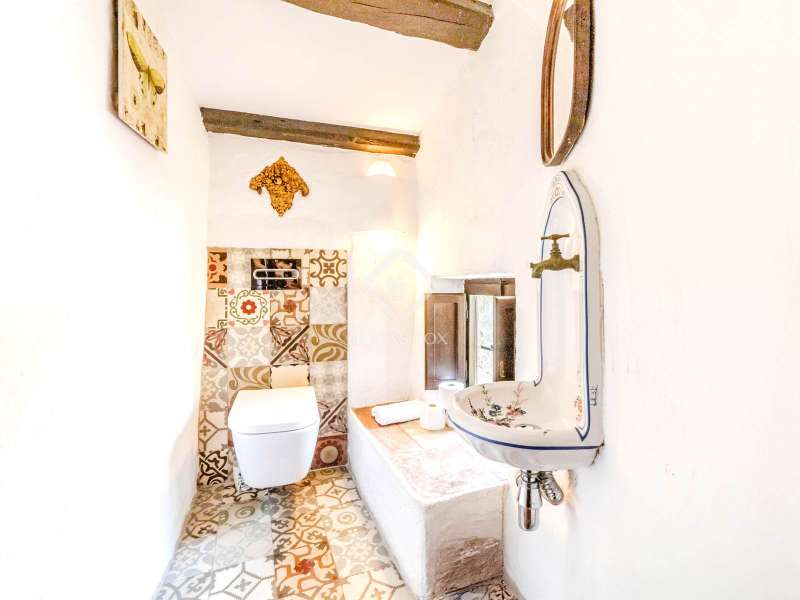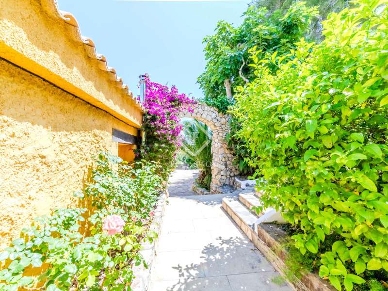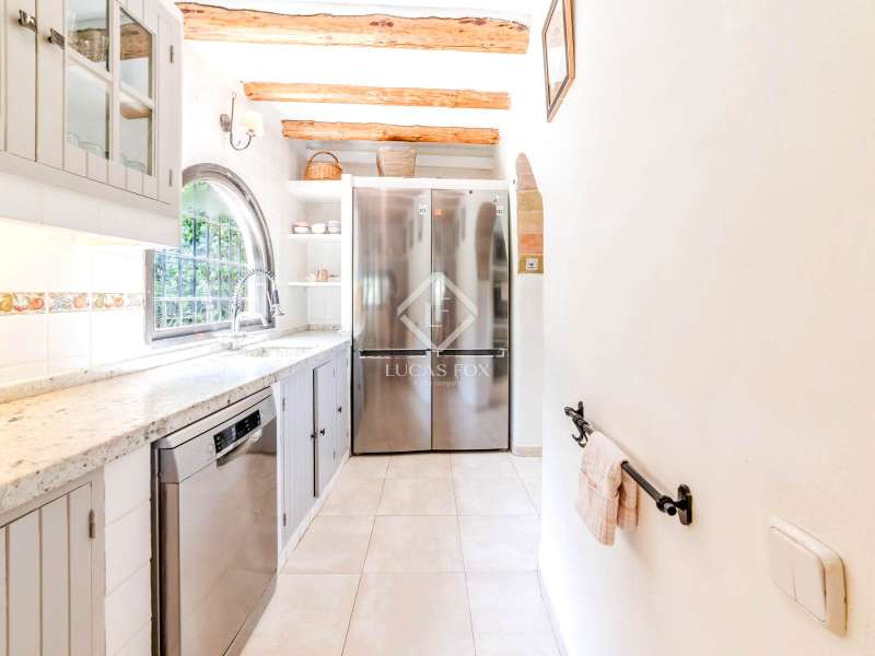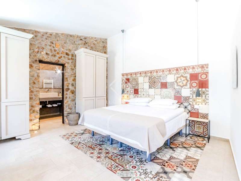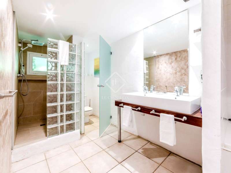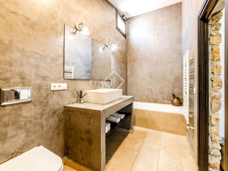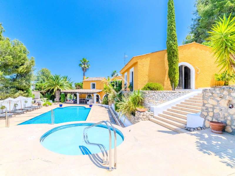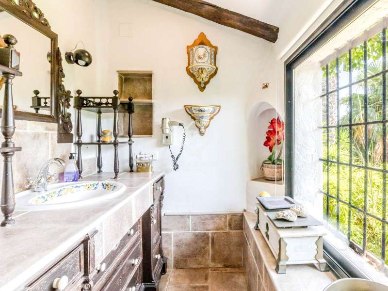 This unusual rural property was once a Spanish wine estate and dates back to 1842. It is now a lavish villa with a large annex building that is used as separate accommodation. The property, which is close to nature (Parc d'Olerdola), is situated on a hillside in the modest Canyelles neighbourhood. It is ten minutes' drive from Sitges and forty-five minutes from Barcelona, in the world-famous Penedés wine region, known for its mouthwatering Cava wines. The home offers complete solitude and a 4,430 square-metre, fully gated plot. The spacious main house, which is roughly 470 square metres, has five bedrooms and en-suite bathrooms. Additionally, the annex building has four other suites with private bathrooms. Because of this, the property may house a large family or be used as tourist rental accommodation, utilizing the current licence for that purpose. We enter the main building through the impressive front door and arrive at the entrance hall, which provides access to a guest bathroom and an office. The first double bedroom with a living area, fireplace, and private bathroom is located on the left of the stairs. The second double bedroom with a living space and an attached bathroom is also located here. The third double bedroom is located in this part, which is accessible from the hallway up the stairs to the right. It also has a private patio and an en-suite bathroom. The remaining two bedrooms with en-suite bathrooms are also found on this level of the home, and all have been designed to be peaceful and comfortable, perfectly complementing the feel within the home. We descend one level to the spacious living area, which is situated in the space where the former wine press once stood. It includes a large dining room, an attractive sitting room, and a lounge area with a fireplace. A contemporary, open, and fully furnished kitchen is located further along this floor. The spacious 15x6-metre pool, sunbathing area, and partially covered patios are all accessible from the kitchen. There is a pool house, a bar, and a jacuzzi. A beautiful, mature green garden with fruit trees and palm trees, surrounded by nature and mountains, is a veritable haven where one may enjoy a Mediterranean lifestyle year-round. In addition to the home, there is a 175 square-metre annex structure that currently houses an apartment for four people with a living area, kitchen, and four bedrooms with living space and en-suite bathrooms. In addition to having access to the garden with all the amenities, these suites and the apartment each have a private patio. The main building's roof was recently insulated, and the windows have double glazing, the property has air conditioning, a spa area with a sauna and Turkish steam bath, a swimming pool with a salt water installation and a jacuzzi, and hot water supply and heating powered by solar panels. Please contact us for further information.