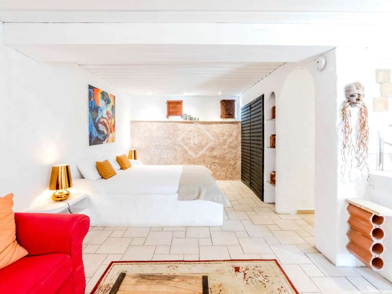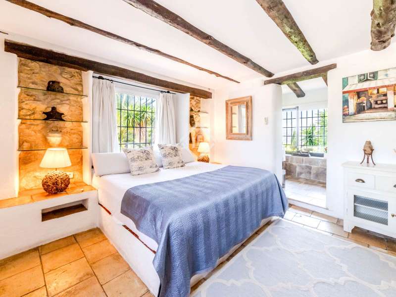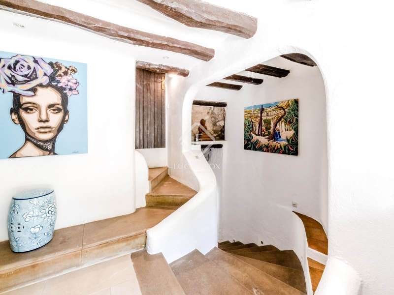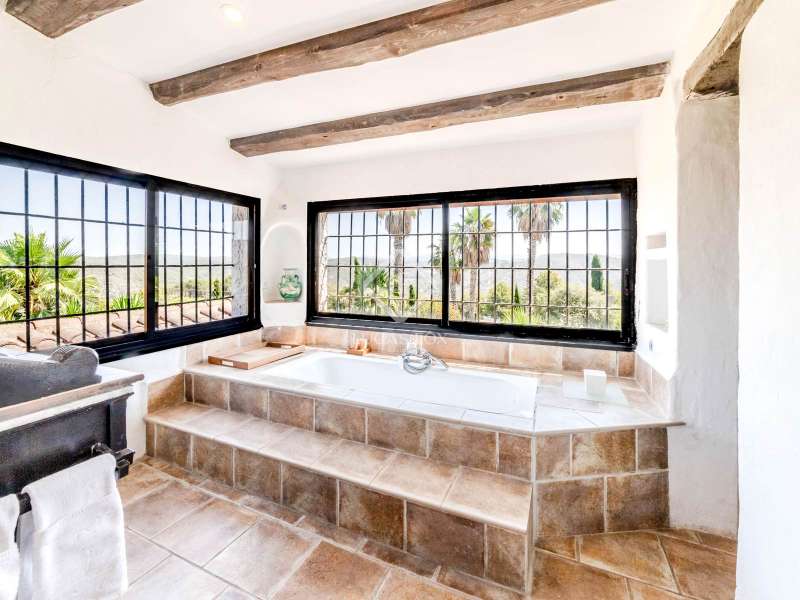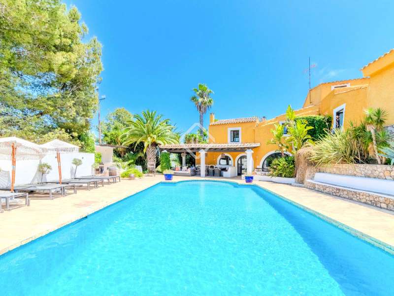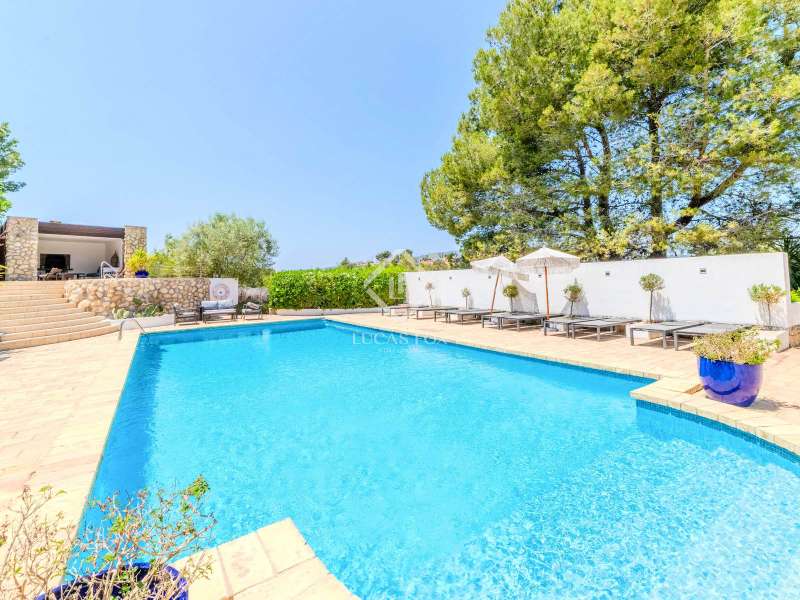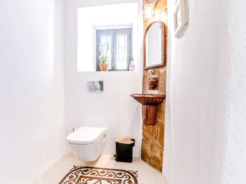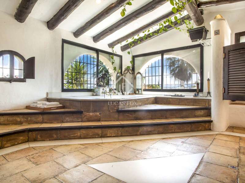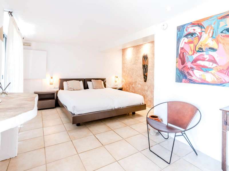 This unusual rural property was once a Spanish wine estate and dates back to 1842. It is now a lavish villa with a large annex building that is used as separate accommodation. The property, which is close to nature (Parc d'Olerdola), is situated on a hillside in the modest Canyelles neighbourhood. It is ten minutes' drive from Sitges and forty-five minutes from Barcelona, in the world-famous Penedés wine region, known for its mouthwatering Cava wines. The home offers complete solitude and a 4,430 square-metre, fully gated plot. The spacious main house, which is roughly 470 square metres, has five bedrooms and en-suite bathrooms. Additionally, the annex building has four other suites with private bathrooms. Because of this, the property may house a large family or be used as tourist rental accommodation, utilizing the current licence for that purpose. We enter the main building through the impressive front door and arrive at the entrance hall, which provides access to a guest bathroom and an office. The first double bedroom with a living area, fireplace, and private bathroom is located on the left of the stairs. The second double bedroom with a living space and an attached bathroom is also located here. The third double bedroom is located in this part, which is accessible from the hallway up the stairs to the right. It also has a private patio and an en-suite bathroom. The remaining two bedrooms with en-suite bathrooms are also found on this level of the home, and all have been designed to be peaceful and comfortable, perfectly complementing the feel within the home. We descend one level to the spacious living area, which is situated in the space where the former wine press once stood. It includes a large dining room, an attractive sitting room, and a lounge area with a fireplace. A contemporary, open, and fully furnished kitchen is located further along this floor. The spacious 15x6-metre pool, sunbathing area, and partially covered patios are all accessible from the kitchen. There is a pool house, a bar, and a jacuzzi. A beautiful, mature green garden with fruit trees and palm trees, surrounded by nature and mountains, is a veritable haven where one may enjoy a Mediterranean lifestyle year-round. In addition to the home, there is a 175 square-metre annex structure that currently houses an apartment for four people with a living area, kitchen, and four bedrooms with living space and en-suite bathrooms. In addition to having access to the garden with all the amenities, these suites and the apartment each have a private patio. The main building's roof was recently insulated, and the windows have double glazing, the property has air conditioning, a spa area with a sauna and Turkish steam bath, a swimming pool with a salt water installation and a jacuzzi, and hot water supply and heating powered by solar panels. Please contact us for further information.