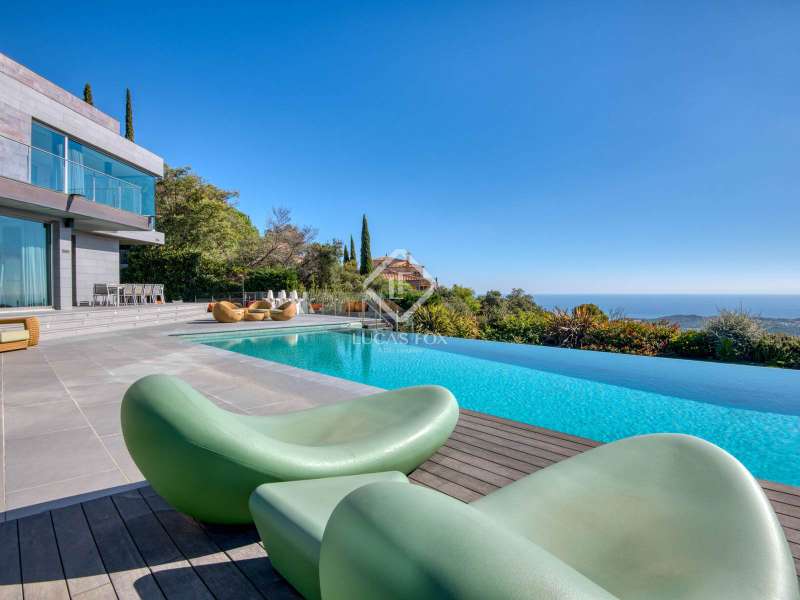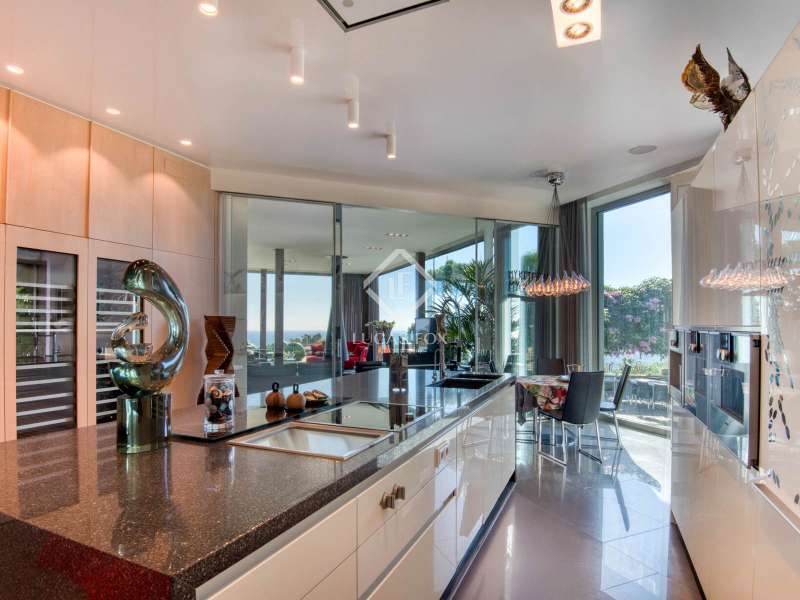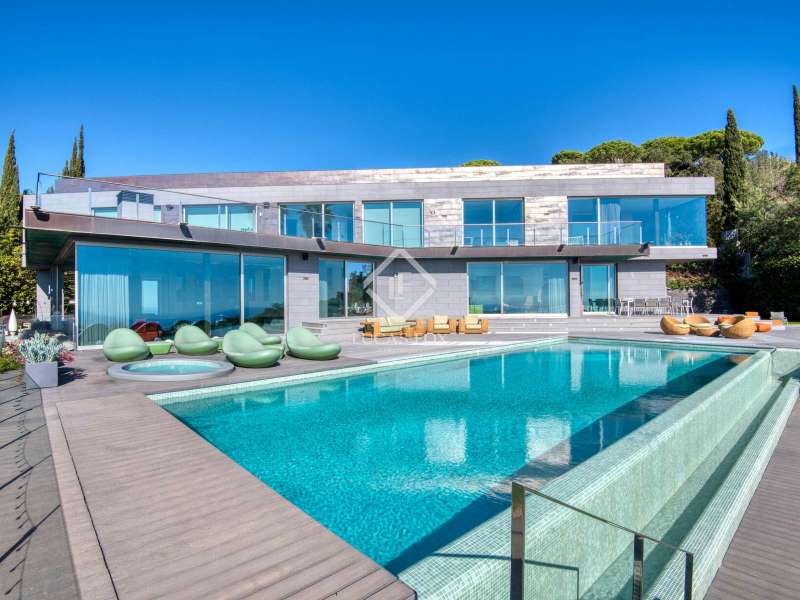 This spectacular, south-facing property has been designed to maximize natural light throughout the day and enjoy unforgettable sunsets. Its contemporary architecture and expansive windows frame a privileged natural setting, where the sea, mountains, and golf course merge into a unique landscape. Built with the high specification materials and finishes, this property offers an exceptional level of luxury and comfort. The interior spaces are remarkably spacious, bright, and elegant, with a design that blends modern aesthetics with cutting-edge functionality. The main floor houses the master suites, each with its own bathroom and panoramic views, ensuring maximum privacy. The lower floor features a spectacular day area, dominated by a large living room with floor-to-ceiling windows that open onto a 90 m² infinity pool terrace, seamlessly blending indoor and exterior spaces. The modern, fully equipped kitchen, featuring high-end appliances , is the heart of the property, perfect for those who enjoy fine dining and entertaining. The wellness area includes a private gym, sauna, hammam, and a multifunctional room designed for relaxation and personal care. Every detail has been designed to offer a sophisticated living experience: a state-of-the-art home automation system, piped music throughout the house, programmed lighting, and a private elevator that conveniently connects all floors. The finishes reflect the excellence of top international brands, such as Rimadesio and Technal, and stand out for their elegance and durability. The staircases, bathed in natural light, the large windows, and the careful selection of materials convey a sense of harmony and well-being in every corner. Located on a 2,541 m² plot , the property offers absolute privacy in an unparalleled natural setting. It is the perfect place for those seeking a unique residence where technology, design, and luxury combine to enjoy the most exclusive lifestyle on the Costa Brava.