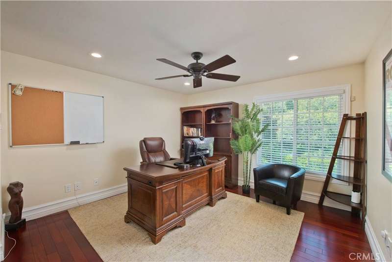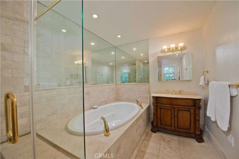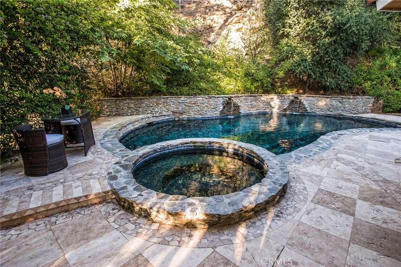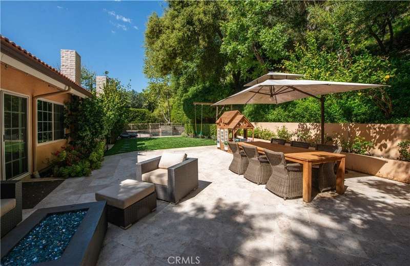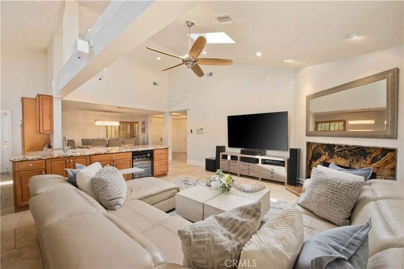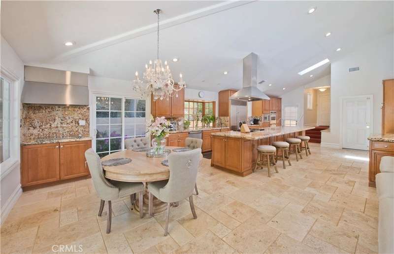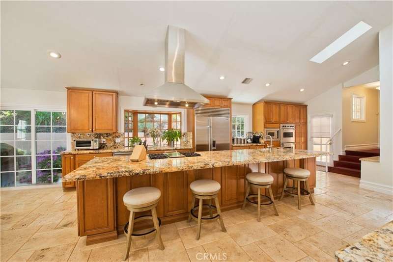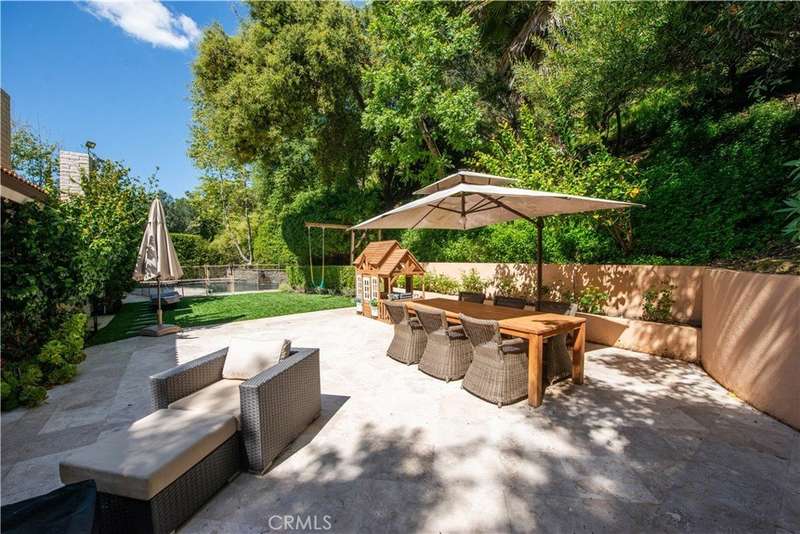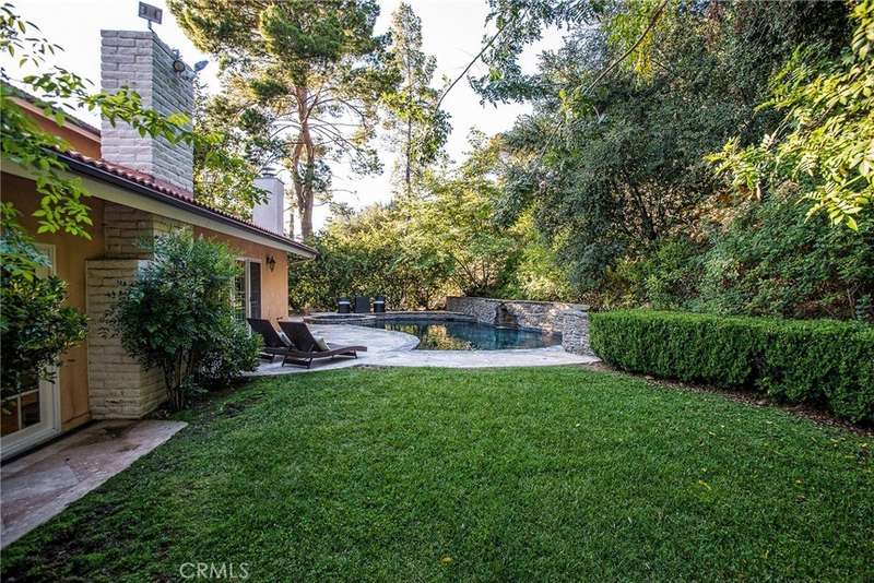 Welcome to this exquisite, gated Tuscan villa, gracefully poised in the picturesque hills of Encino. A showcase of timeless architecture and refined craftsmanship, this residence is defined by its grand open-concept living spaces, soaring vaulted ceilings, gleaming wood floors, and elegant stone finishes throughout. At the heart of the home lies a spectacular family-style chef’s kitchen, complete with an expansive center island, generous breakfast bar, casual dining area, and custom cabinetry. The kitchen is fully equipped with professional-grade Viking and Sub-Zero appliances, including dual ovens, built-in refrigeration, microwave, cooktop with griddle, and even an indoor BBQ — all seamlessly connecting to the fabulous family room, creating a culinary dream designed for both everyday living and grand entertaining. Additionally spread out at the central entertainer's bar with wine fridge, relax in the spacious formal living room with stunning stone fireplace or enjoy intimate dinners or extended family celebrations in the spacious formal dining room. Retreat to the opulent first-floor primary suite, a true sanctuary offering a romantic fireplace, private sitting area, direct access to the rear grounds, and a lavish spa-inspired bath. Enjoy a jetted soaking tub, dual-head shower, oversized vanity, sauna, and a custom walk-in closet fit for the most discerning tastes. Four additional bedrooms provide ample flexibility — two of which can serve as secondary primary suites, a theater, or fabulous game room! Step outside and decompress in the ultra-private rear oasis, where tranquility meets resort-style living. The serene patio overlooks the grassy play area and sparkling pool and spa with cascading waterfalls, surrounded by lush mature landscaping and peaceful hillside views — the perfect setting for relaxation or entertaining under the stars. Additional highlights include a gated motor court with stone-tiled drive, convenient Westside access and located within the Lanai School District. This remarkable estate blends warmth, sophistication, and functionality — a true Tuscan-inspired masterpiece you will surely not want to miss!