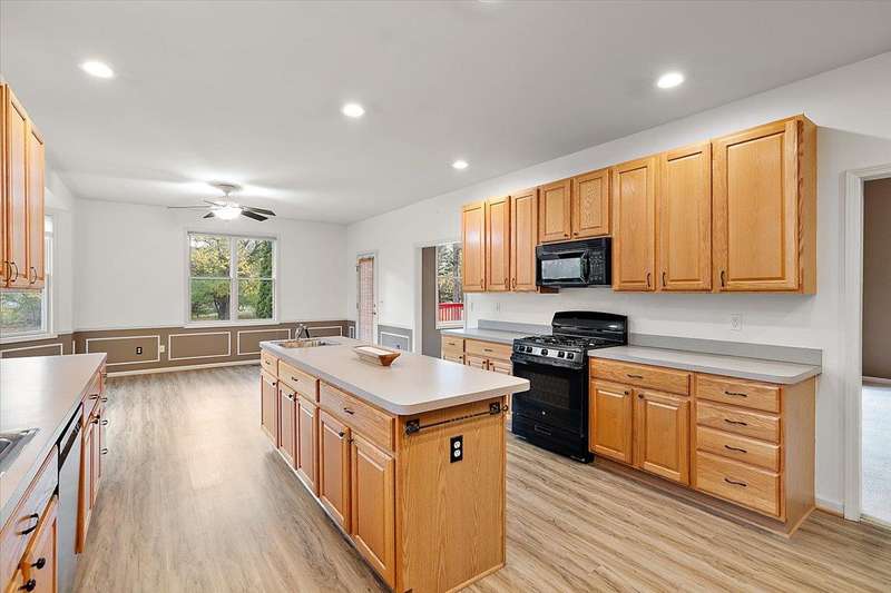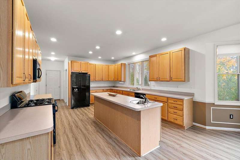 Welcome home to this spacious and beautifully cared-for ranch, tucked away on a lovely .65-acre lot surrounded by nature. Step inside to find hardwood floors in the foyer, vaulted ceilings, and plenty of closet space for all your everyday essentials. The open great room feels bright and cozy with its tall ceilings, recessed lighting, plush newer carpet, large windows, and a gas fireplace — perfect for family movie nights or relaxing evenings together. The kitchen is truly the heart of this home! It’s huge — with an oversized island, tons of counter space, and a sunny eat-in area big enough for a large dining table. You’ll love the view of the backyard where you can watch birds and wildlife while enjoying your morning coffee. All of the bedrooms are generous in size and offer plenty of closet space. The primary suite features a walk-in closet, a large tub and shower, and a private door leading to the spacious back deck — a great spot to unwind or host family barbecues. Downstairs, the freshly painted basement stretches the full length of the home, giving you endless options for a playroom, home gym, or extra storage. The freshly painted 2.5-car attached garage adds even more convenience.This home has been lovingly maintained and is ready for its next chapter. BATVAI