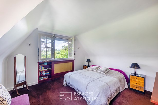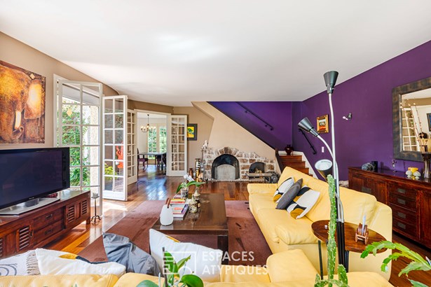 Located in the Gressets district, in a peaceful and green environment, this 182 sqm cottage (276.22 sqm on the ground) offers a serene and idyllic atmosphere, perfect for those looking to escape the hustle and bustle of the city. Only a 9-minute walk from Bougival train station, it is nestled in its superb landscaped, enclosed, not overlooked garden of 1,345 sqm.