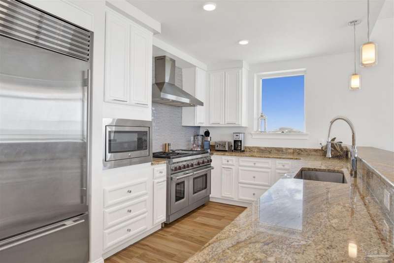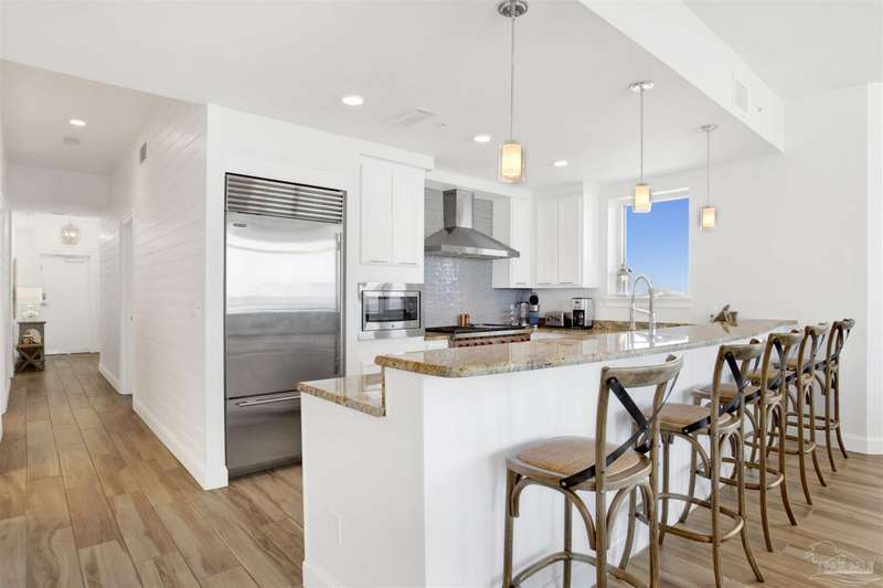 THIS RARE 5-BEDROOM, 6TH FLOOR CORNER RESIDENCE HAS BREATHTAKING, PANORAMIC VIEWS OVERLOOKING MILES OF PROTECTED COASTLINE AND THE GULF! ENJOY EXCEPTIONAL AMENITIES IN A TRANQUIL, LOW-DENSITY BEACHFRONT SETTING FAR AWAY FROM THE CROWDS. Vista del Mar has an irreplaceable location at the east end of the island of Perdido Key and borders over 5 miles of protected Gulf Islands National Seashore offering nature trails, bike paths, and unspoiled beaches for your enjoyment. This luxurious residence has been specially customized to a 5 BEDROOM/4.5 BATHROOM floor plan and comes fully furnished with assigned garage parking. This gem showcases impressive floor-to-ceiling windows, a generous balcony complete with gas grill, and stunning white ship lap accents throughout. The exquisite kitchen boasts granite countertops, high-end cabinetry, a Chef's kitchen featuring a Wolf�® range and chimney hood, a Sub-Zero�® refrigerator, and a wet bar equipped with ice maker and wine refrigerator. Luxurious guest suites are designed with spa-like bathrooms and ample walk-in closets. At Vista Del Mar, enjoy a secure, gated community entrance, designated garage parking, and climate-controlled owner storage at the amenity level. The grand lobby entrance offers various seating areas, custom artwork, and awe-inspiring views. High-speed elevators lead to climate-controlled lobbies. Indulge in the lavish outdoor pool area with a vast beachfront deck, hot tub, and covered outdoor seating. Experience the heated indoor pool with stunning water views. The owner's health club provides a fully-equipped fitness room, yoga studio, and massage treatment rooms. Residents can unwind in the club room with fireplace, bar, pool tables, and TVs. Surround yourself with lush landscaping, coastal breezes and WELCOME HOME TO LUXURY BEACHFRONT LIVING AT ITS FINEST!