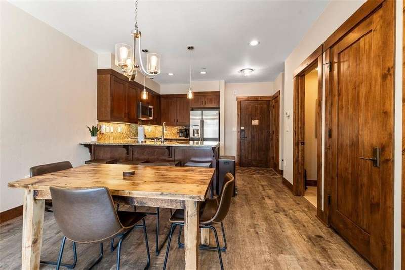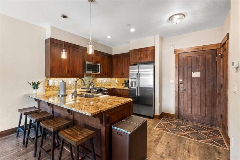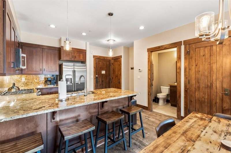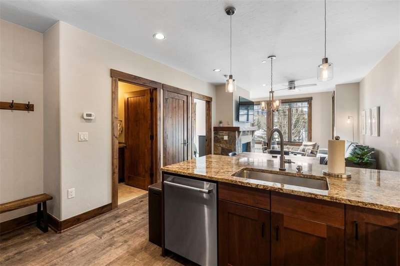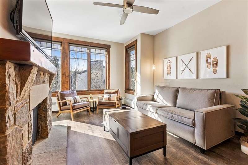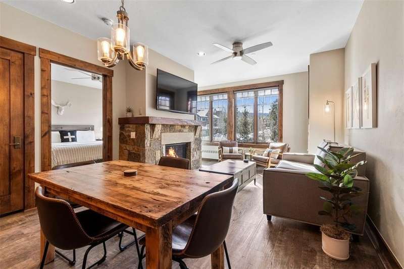 Experience the best of vibrant Breckenridge and luxury mountain living in the coveted Water House building. Enjoy stunning views of Peak 9 and 10 year round from your private balcony while also being in a prime location in the heart of downtown Breckenridge, walkable to shopping and dining just minutes away. This is one of few properties located in the highly desirable resort zone, offering exceptional short term rental potential. The resort experience and premium amenities at Water House are unbeatable. Top tier amenities include a clubhouse, fitness room, hot tubs, pool, sauna, and theater room. In addition, there is ample storage to lock up personal items in the owners closet within the unit, store skis in the private ski locker, and utilize the private storage cage for bikes and sporting equipment. After retrieving skis from your private ski locker or the concierge storage, you are just steps to Peak 9 and then on to the Quicksilver lift. This condo is impeccably maintained, well appointed, and tastefully decorated in a cozy mountain modern style and just minutes from all of the outdoor adventures.