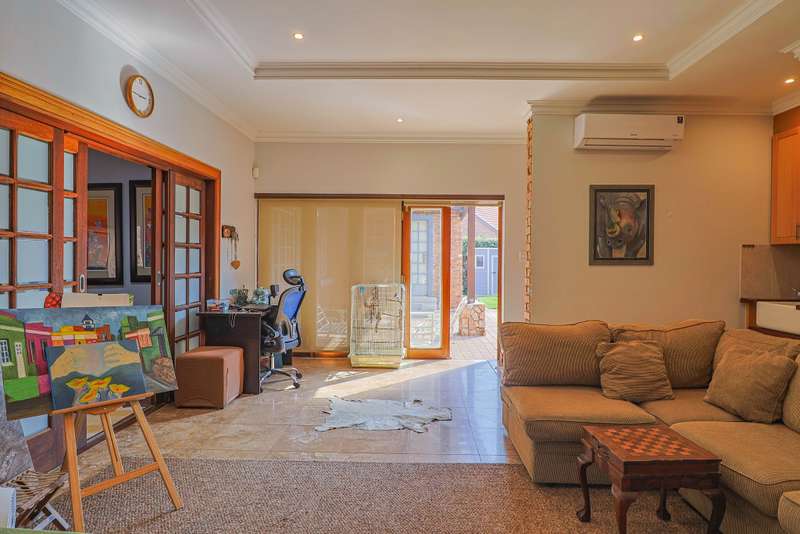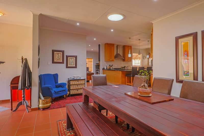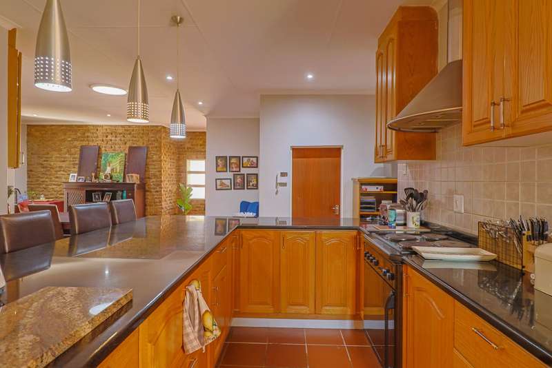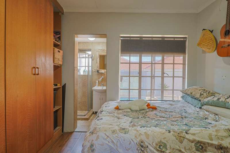 Welcome to this lovely 4-bedroom family home located in a secure estate near Zwartkop Golf Course, Zwartkop High School, and Saxby Shopping Centre. Perfect for families, the home offers a warm and practical layout with plenty of space to enjoy. The main bedroom features its own en-suite bathroom and closet, creating a comfortable retreat. One of the other bedrooms includes a private shower and sink, and there's also a second full bathroom for added convenience. The open-plan living and dining areas flow into a modern kitchen with a scullery, which leads out to the backyard and a neat Wendy house—great for storage or extra space. A cozy study nook adds versatility, whether you need a work-from-home spot or just a quiet corner. Step outside to a welcoming braai area and a generous backyard with a sparkling swimming pool and chill zone—perfect for entertaining or relaxing on warm days. Parking is no problem, with space for four cars, including a double garage. This home offers comfort, security, and convenience—all in one. Ideal for families looking to settle in a peaceful, well-located community.