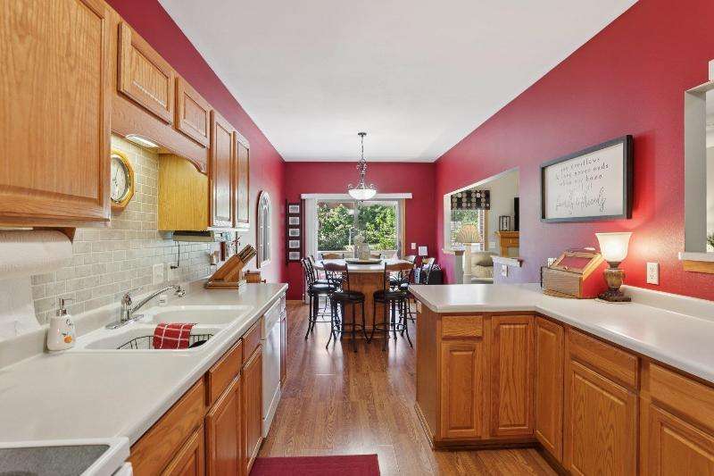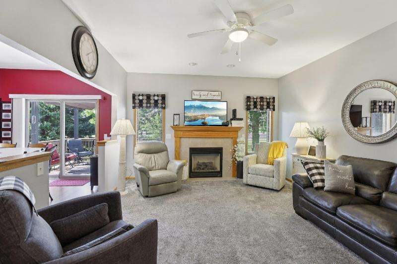 Meticulously maintained and move-in ready! This beautiful condo offers a spacious kitchen with a breakfast bar, abundant cabinet space, and a cozy dining area. Relax in the inviting living room featuring a gas fireplace. Upstairs, you'll find two generously sized bedrooms, each with walk-in closets and private baths. The oversized master suite boasts a stunning cathedral ceiling. Convenient second-floor laundry adds ease to your daily routine. The lower level includes a finished family room and a bath rough-in for future expansion. Enjoy peace of mind with an included UHP warranty. Recent updates include a modern bath with a walk-in shower, fresh paint, new flooring, and updated mechanicals.