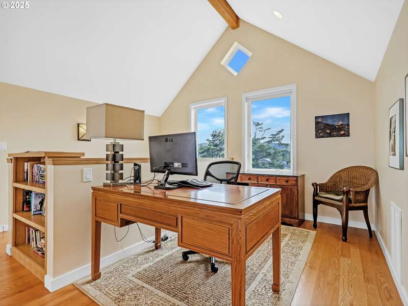 Spacious home with ocean views in Southwest Seaside! This 3,206 sq. ft. coastal retreat offers 5 bedrooms, 3.5 bathrooms, wood floors, a media/bonus room, Loft with large office and vaulted ceilings. Currently a successful vacation rental – ideal as a full-time home or investment. Just minutes from the beach, dining, and shops. Partial lot ownership protects ocean view.