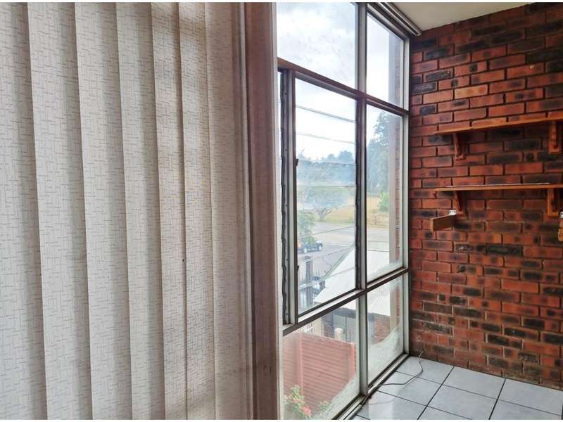 The block of flats is a safe haven with two entrances. The 64sqm flat is on the first floor with entrance into a spacious open plan kitchen and lounge area. The kitchen is neat with many white wooden cupboards and a freestanding stove. One bedroom with an on suite bathroom big enough for a washing machine. Large windows allowing light in are all fitted with vertical blinds. The flat is tiled throughout and has ceiling fans fitted. TV cables in both the lounge and bedroom. An enclosed sunny patio, which could be a space to relax, or even utilized as a small bedroom. The homeowners association is strong and financially sound. Levies per month are R743 to maintain the gates, refuse removal, corridors and beautiful communal gardens! Flats have fibre optic cables to each passage in the block. Ideal for those working from home. One undercover open garage and parking for visitors. It is a perfect investment to rent, as it is located in White River Central. Within walking distance to the shops and White River schools. Ideal for a single person or a couple!