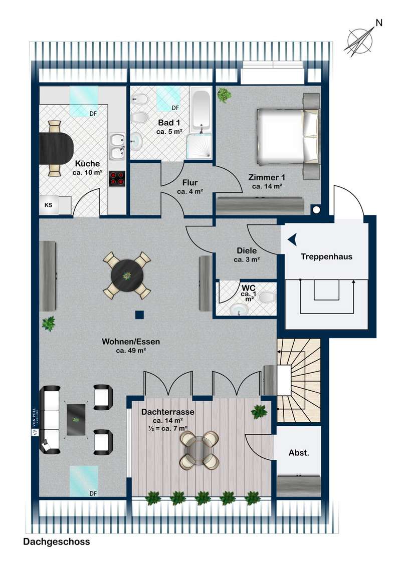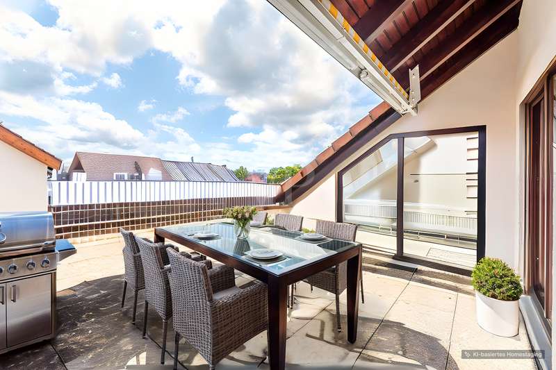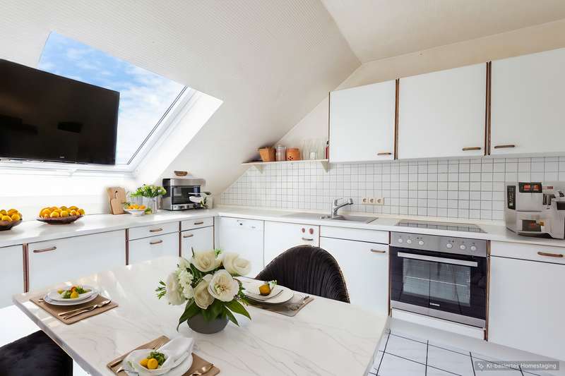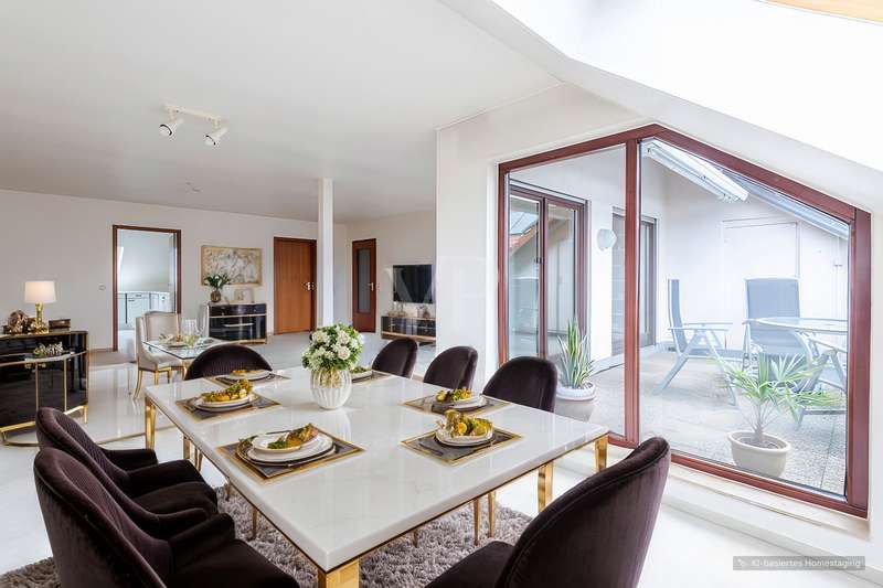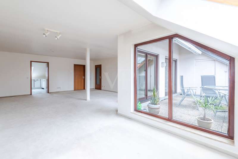 This spacious 4-room maisonette apartment with a living space of approx. 140 m² offers space for individual living dreams. The building was constructed in 1991 and is of solid construction, providing a good basis for individual design. The property is in need of renovation, but was equipped with a new heating system in 2017. The property impresses with its generous room layout with a total of 4 rooms and 2 daylight bathrooms on two floors. A large roof terrace / loggia with storage room invites you to relax and sunbathe and offers a beautiful view of the surrounding nature. The electric awning provides pleasant protection from the sun and rain. The apartment is furnished to an age-appropriate standard and is ready to move into, so that the new owners can design and renovate it to their own taste in a timely manner. A fitted kitchen is already available and offers space for culinary creations as well as a seating area. The living rooms and bedrooms are fitted with carpet, while the kitchen and bathrooms each have easy-care tiles. The two daylight bathrooms are very spacious, offer comfort and are functionally designed. Particularly noteworthy is the spacious hobby room in the basement, which is heated and therefore offers a wide range of possible uses. The attic as a separate property offers additional storage space. You can park your vehicle safely and conveniently in the garage with overhead door. The apartment is located in a 4-party house in a quiet and natural location that invites you to relax and unwind. The surrounding area offers numerous opportunities for walks and sporting activities in nature. Overall, this is a property in need of renovation with plenty of living space and great potential for individual design ideas in an attractive and quiet environment. We are pleased to present this beautiful maisonette apartment to you.
