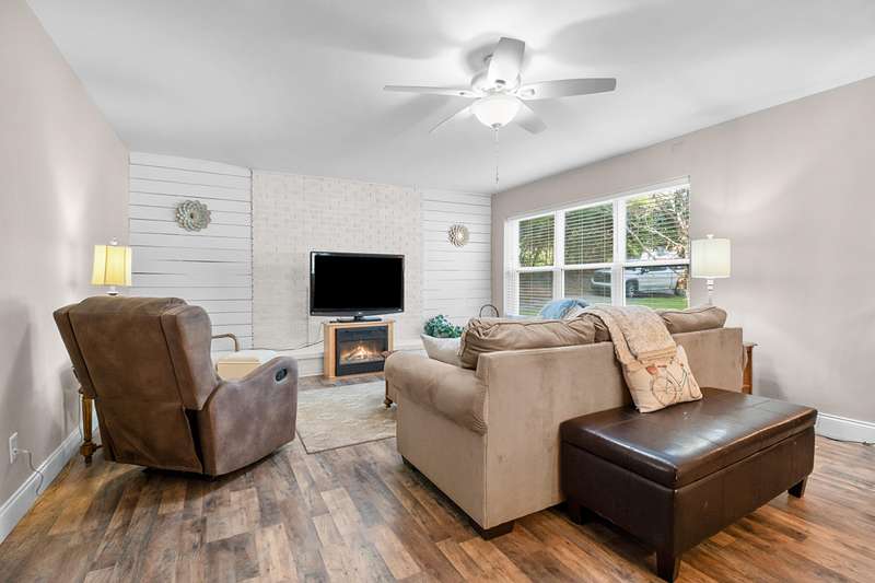 Welcome home to this charming Craftsman-style brick home currently zoned residential or commercial in the heart of London. Designed for comfort and convenience, this single-level residence features an updated kitchen, fresh neutral paint colors, stylish lighting and no carpet throughout. A beautiful shiplap feature wall adds warmth and character to the living room. Enjoy the spacious laundry and storage room for more flexibility. The bonus room is ideal are for a home office or could be easily converted to a third bedroom. Outside the oversized carport and two driveways make parking and entertaining simple. Nestled on a level lot with privacy, you'll enjoy the large fireplace or relax on the private back patio. With low maintenance updates including a durable metal roof, and newer heat pump, this inviting home is both welcoming and accessible, perfect for easy living.