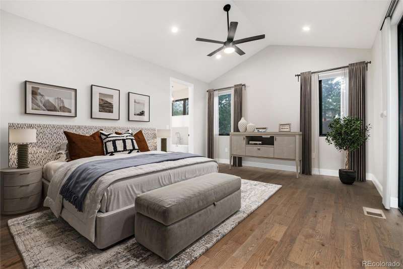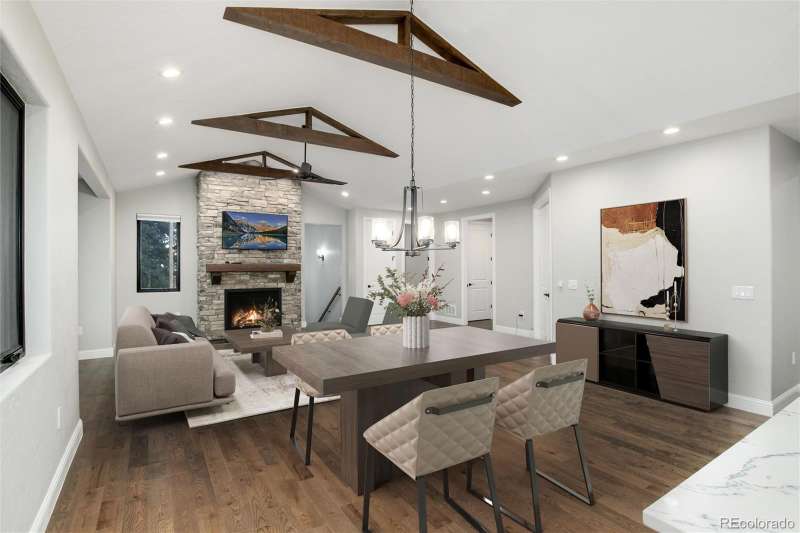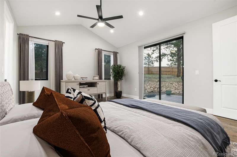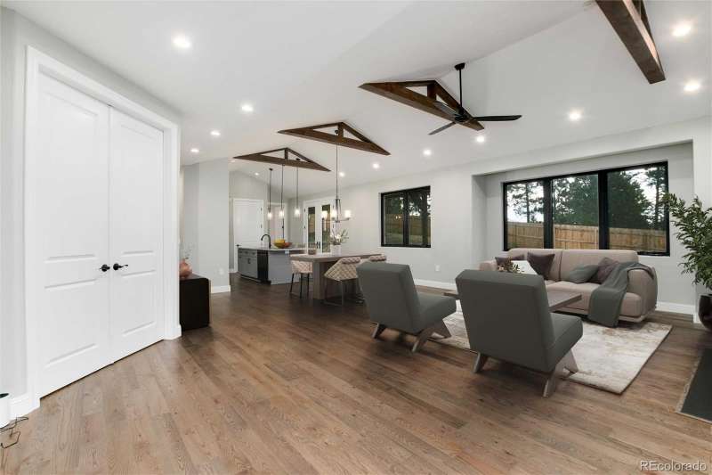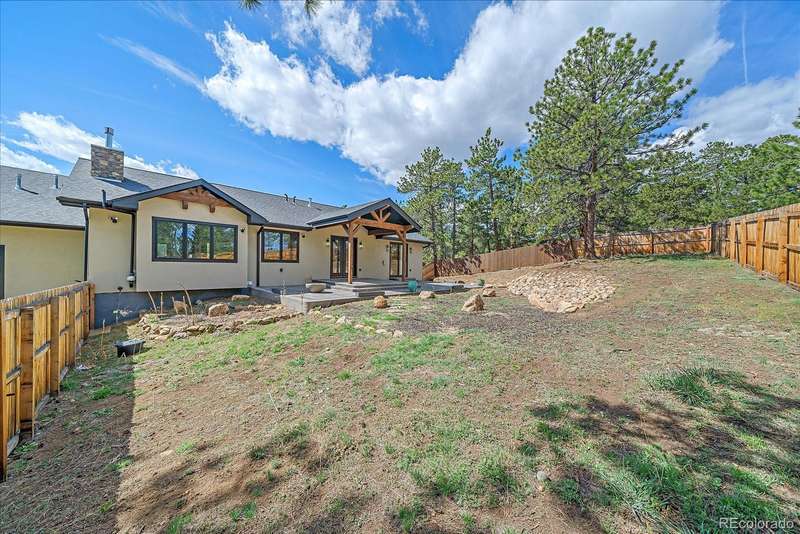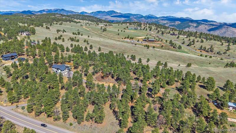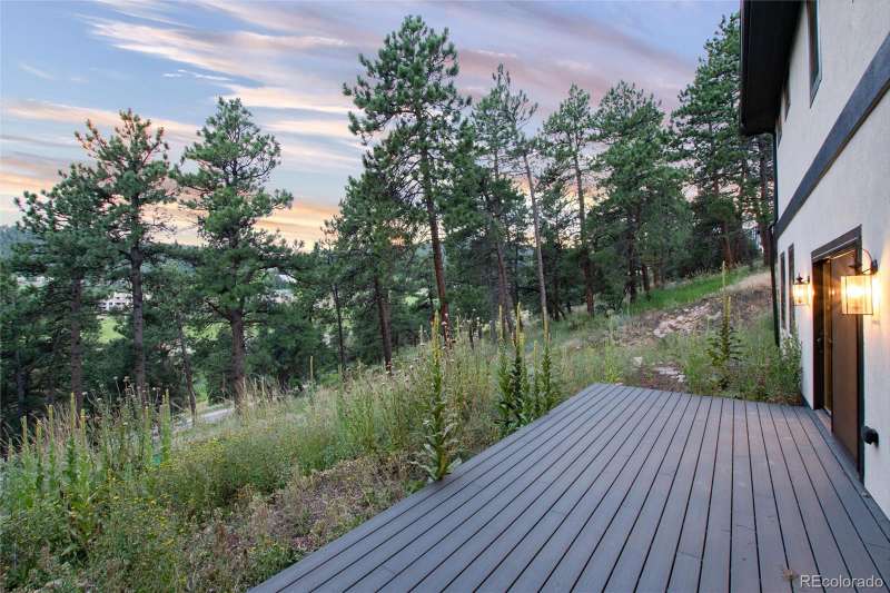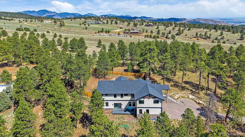 Discover your dream home nestled among the serene ponderosa pines on a private 2.03-acre lot. This spacious newer ranch offers 6 bedrooms and 5 baths, perfect for multigenerational living. Step inside to find a grand vaulted living area, flowing into a chef's kitchen with Quartz countertops, 42" white cabinets, KitchenAid appliances, and a gas stove. The main floor features a laundry room, 3 bedrooms plus a primary bedroom, one of which is a wonderful in-law suite with its own private living area and wet bar. The primary suite offers patio access and a luxurious en-suite bath with heated floors, a steam shower, a soaking tub and a large walk in closet. An oversized 3-car garage boasts an EV charging station and water hookups. Downstairs, enjoy a basement with 10-foot ceilings, 2 bedrooms, a wet bar, and walk out sliding glass doors to a private deck. Outdoors, relax on the covered stamped concrete patio and gas hookups for a fire pit and where your backyard backs up to thousands of acres of open space called Mount Vernon Canyon club where occasional horse visits and abundant wildlife.This privacy brings you all kinds of animals such as horses, elk and more. Just 20-30 minutes to Downtown Denver, easy access to the slopes and close to Red Rocks for all the shows! Zoning is A-2 but below the 10 acres required for A-2 so please contact Jefferson County zoning with any questions regarding allowed use. Some interior photos are virtually staged