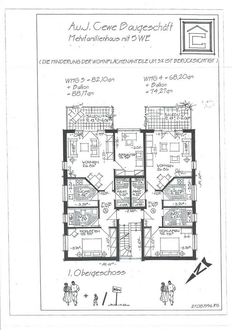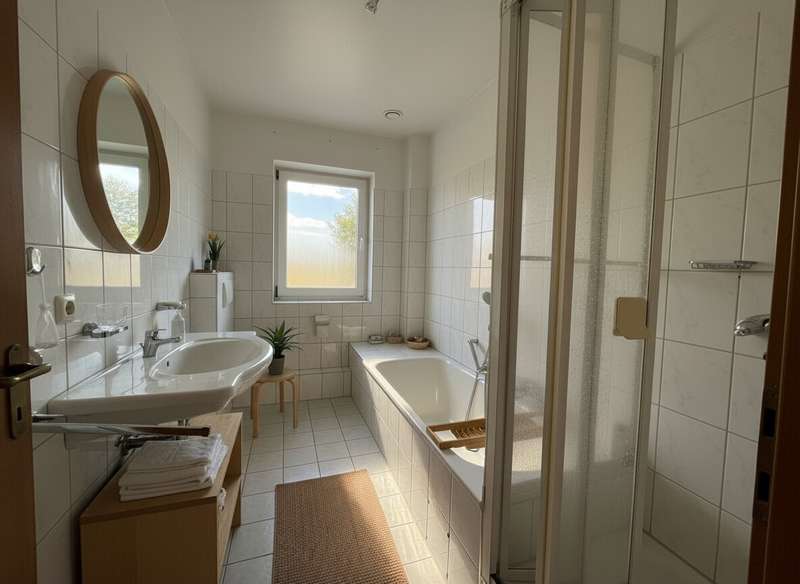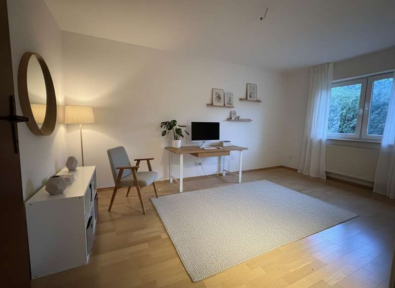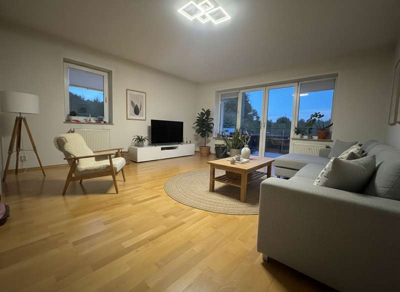 As good as new and well-maintained MFH: Well-designed apartment with forest view This well-kept apartment is located in a new apartment building from 1996 with only five parties, which guarantees a pleasant and quiet living environment. The apartment impresses with its generous living space of approx. 88.17 m², which is optimally utilized by a well thought-out floor plan. There are three rooms in total, including two comfortable bedrooms and a modern bathroom. The spacious living area with parquet flooring invites you to spend sociable hours and relaxed leisure activities. One of the other rooms is also fitted with high-quality parquet flooring, underlining the sophisticated ambience. The apartment is characterized by a good room layout, so that different living concepts can be realized. A highlight of the apartment is the approximately 12.13 m² balcony, which offers a sweeping view of the greenery and the adjacent forest. Here you can enjoy relaxing moments outdoors - both in the morning at breakfast and in the evening after a long day. The property is in very good condition. The heating system was already renewed in 2019 and is operated as a central heating system, which ensures reliable and efficient operation. The apartment has its own garage with an electric door directly in front of the house. Two further parking spaces are also available, making it easy to accommodate guests or an additional car. Bicycles can be stored safely and securely in the associated bicycle shed. Additional storage space is provided by the locked cellar room, which offers sufficient space for seasonal items or rarely used items, for example. The communal lawn area is available to all residents of the building and is ideal for spending relaxing hours outdoors. The ideal location rounds off the offer: both shopping facilities for daily needs and the nearby forest are within walking distance. Thanks to the good infrastructure, you can reach both public transport and important connections within a very short time. In summary, this apartment offers many advantages: A modern and well-kept interior, an appealing room layout as well as practical storage options and designated parking spaces. The proximity to shopping facilities and green spaces further enhances the quality of living and ensures short distances in everyday life. If you value a comfortable and sustainable living environment, we look forward to presenting this property to you in person. Please feel free to arrange a viewing appointment and see the special residential character of this property for yourself.