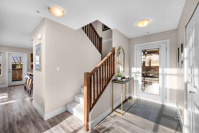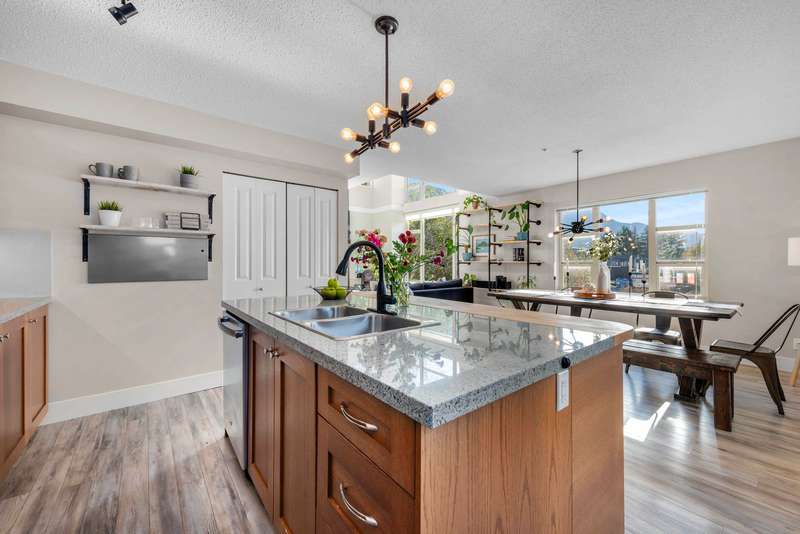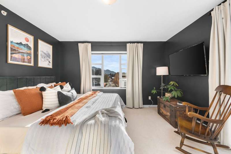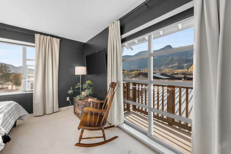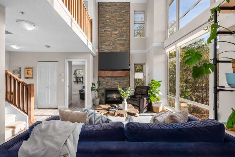 One of Squamish's most unique townhomes, this three-bedroom, two-bath home features soaring 22-foot lofted ceilings and lives more like a detached home than a townhouse. Enjoy incredible 360° mountain views, windows in every direction, and three private decks and patios that capture sunlight all day long. The chef's kitchen flows seamlessly into the open-concept living space, while floor-to-ceiling glass brings the mountains right into your home. The garage is also incredible - loads of space for your gear, a gym and your vehicle. If you're tired of ordinary townhomes, this is a must-see—there's truly nothing else like it.
