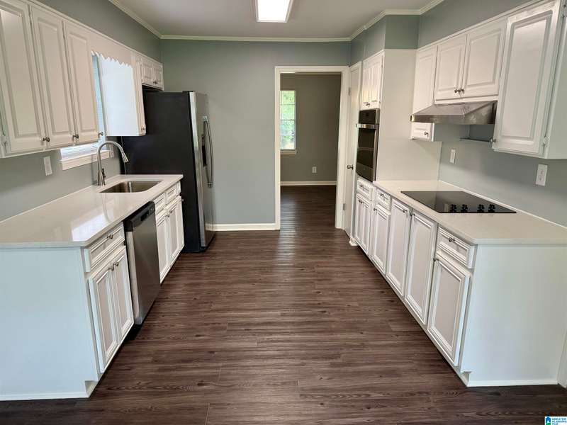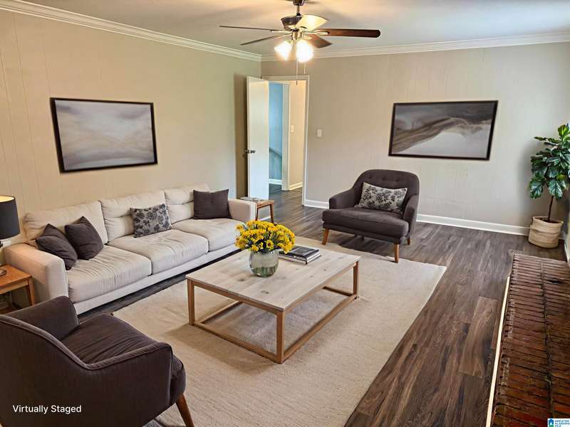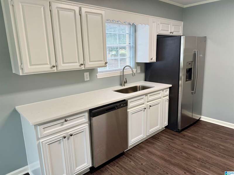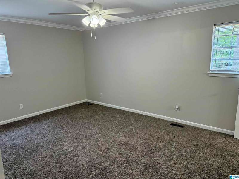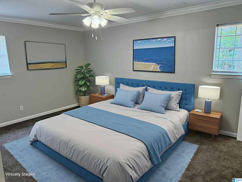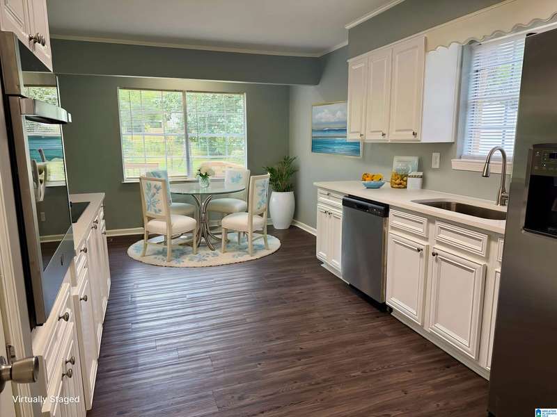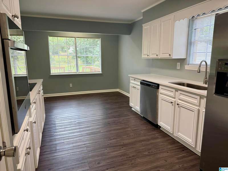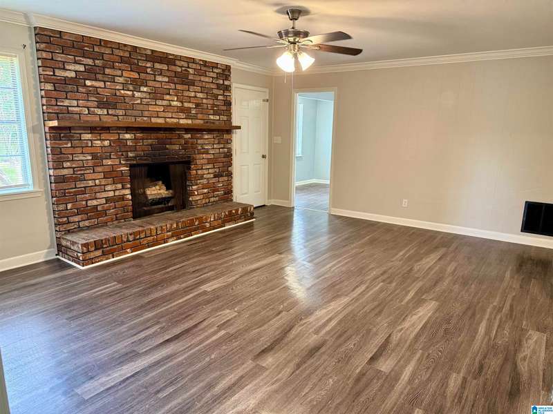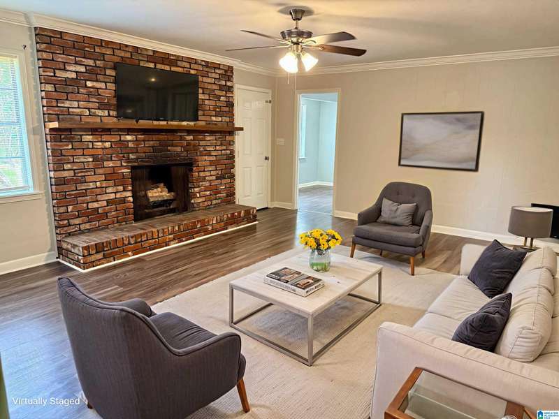 Stunning Hoover home in highly-rated school district, nestled on gorgeous lot with massive fenced backyard—perfect for pets and playing. This spacious residence boasts eat-in kitchen with new quartz counters, updated stainless appliances (including fridge), and large window overlooking the lush backyard. Den has classic brick fireplace, while Living Room is flooded with natural light. Both bathrooms have new quartz counters, and each bedroom has new carpet. Finished basement has two huge rooms with natural light, ideal for a home gym, playroom, or rec room. Convenient to shopping, dining, grocery, and quick access to I-65. Move-in ready and packed with upgrades, this home combines comfort, style, and prime location. Septic replaced 2025. Roof replaced 2023. Call today to schedule your private showing.