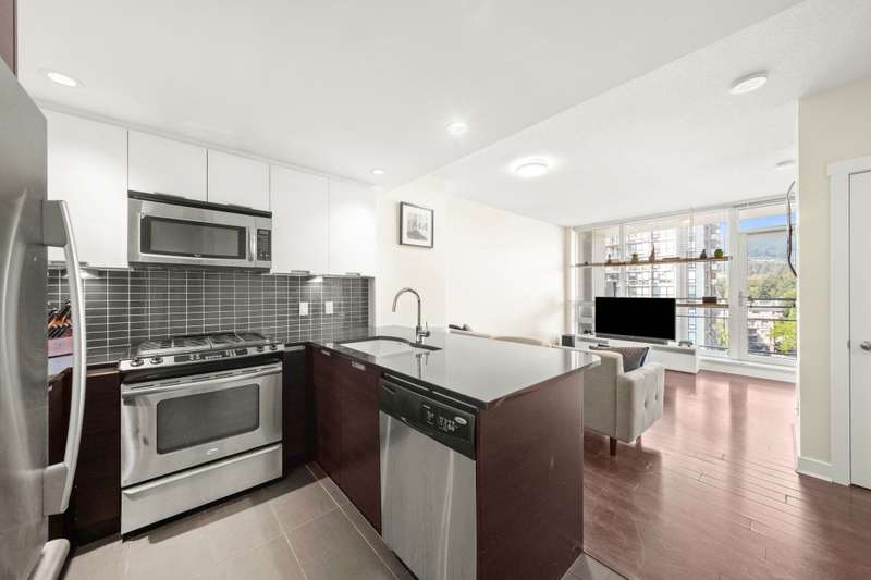 Experience luxury living at Grand Central 2! This spacious 1 bed + large den (big enough to be a 2nd bedroom) features an efficient layout, granite counters, S/S appliances, gas cooktop, and floor-to-ceiling windows that fill the home with natural light. Enjoy mountain views from your balcony—perfect for summer BBQs. Resort-style amenities include pool, hot tub, gym, yoga studio, lounge & playground—all with low strata fees. Steps from Lincoln SkyTrain, Coquitlam Centre, Aquatic Centre, Douglas College, Pinetree Secondary, Lafarge Lake & more!