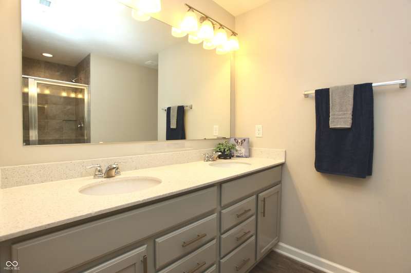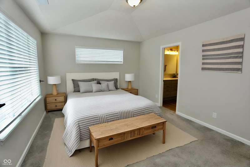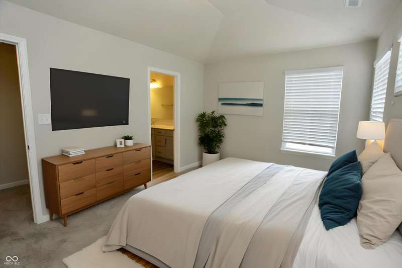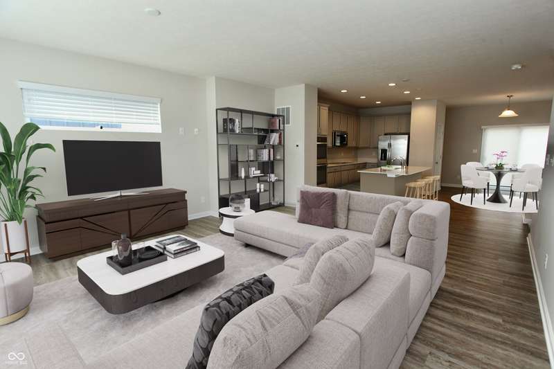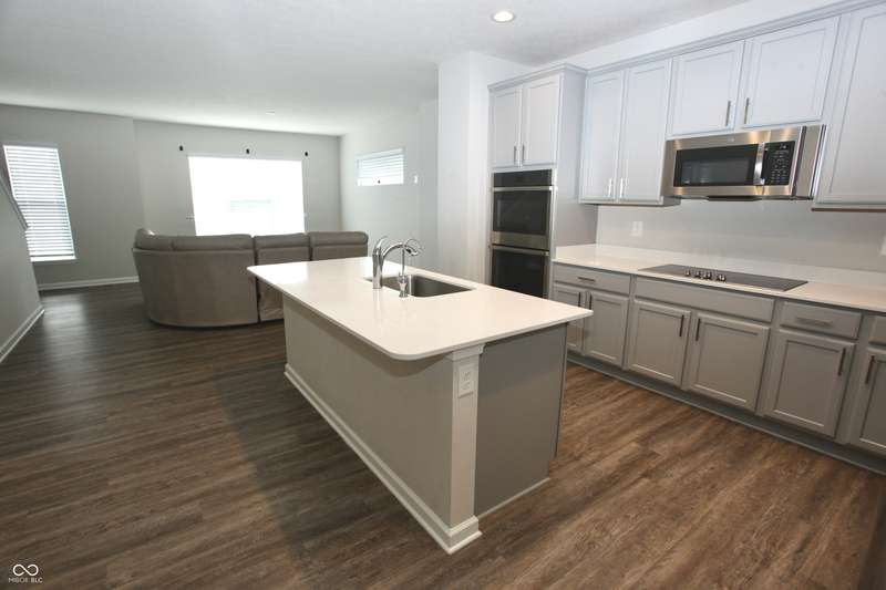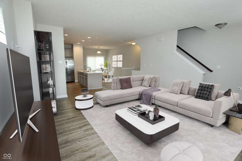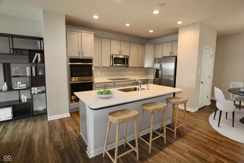 Welcome to this modern, three-story townhome that's just four years young, offering the perfect blend of style and functionality. This gem is an end unit home and allows for an abundance of natural light. The open floor plan seamlessly connects the living room to the gourmet kitchen which boasts sleek quartz countertops, double ovens for the culinary enthusiast, and a spacious island with seating. The Kinetico K5 water filtration system ensures the purest water quality right at your fingertips. All appliances, including the washer and dryer are included making your move-in seamless and stress free. Two spacious bedrooms, each with its own luxurious full bath, provides privacy and comfort for all. The ground floor features a versatile flex room, ideal for a home office, gym or even a cozy den. Low HOA fees make this home an exceptional buy. Only minutes from the airport and downtown Indianapolis, the opportunity for you to relax, explore and enjoy the city's vibrant lifestyle are endless!