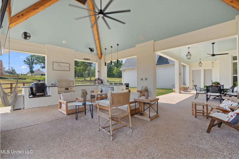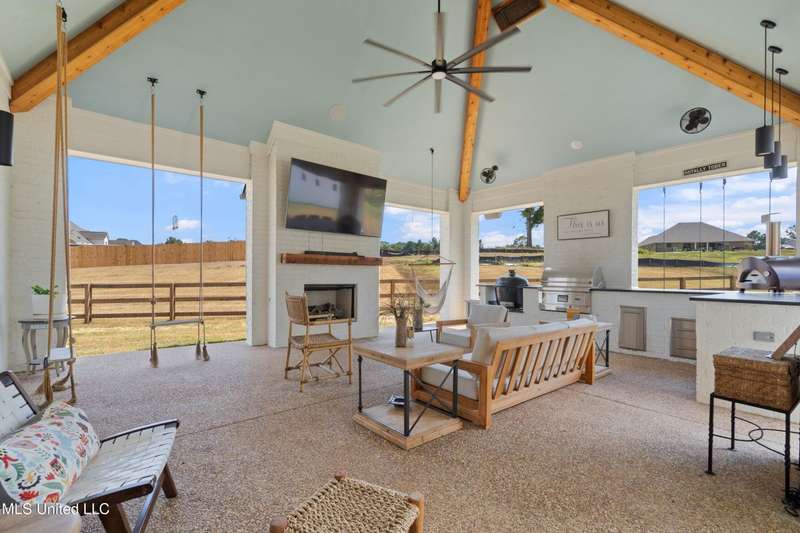 Step into modern Southern charm at its finest with this contemporary farmhouse nestled on 2.26 acres in the desirable Red Banks Road Estates. Built in 2024, this home combines elegant craftsmanship, cozy warmth, and show-stopping features designed for both everyday living and unforgettable entertaining.From the moment you enter, you're welcomed by soaring ceilings, natural light, and thoughtful details that make every space feel like home. The open-concept kitchen steals the spotlight with quartz countertops, a massive island, double ovens, and a walk-in pantry ? opening effortlessly into the great room with custom beams and a statement fireplace.The primary suite is a true retreat with a spa-inspired bathroom, free-standing tub, and walk-in shower. Upstairs, flexible living spaces provide room for a home office, media room, or guest quarters.Step outside to your entertainer's paradise ? a large covered patio with a full outdoor kitchen, perfect for hosting friends or relaxing under the stars. And when you want a little privacy? Slip away to your hidden speakeasy, the perfect spot to unwind and enjoy an evening cocktail in style.Every inch of this home was designed with intention ? balancing luxury, comfort, and craftsmanship ? creating a timeless space that feels both elevated and welcoming.? Highlights:Contemporary farmhouse design with modern finishes4 bedrooms, 3.5 baths, 4,424 sq ft2.26-acre lot with room to add a pool or gardenDesigner kitchen with quartz counters & premium appliancesGreat room with custom fireplace and wood beamsLuxurious primary suite with spa bathHidden speakeasy for private entertainingCovered patio with outdoor kitchen3-car garage & extended drivewayConveniently located near Olive Branch & Collierville