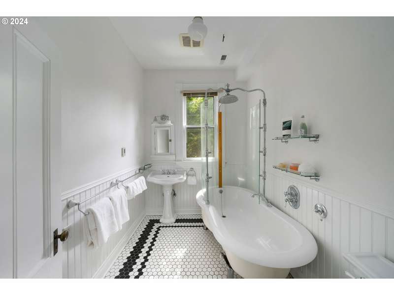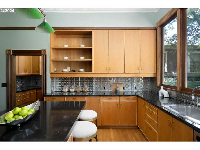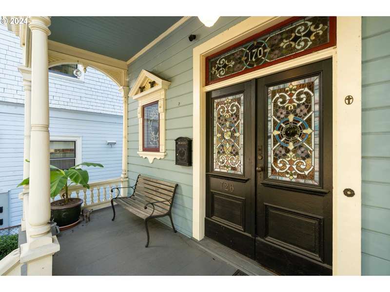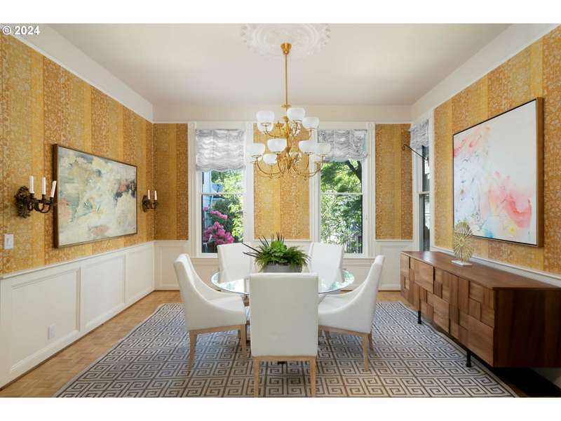 This stunning home is a superb example of Victorian Queen Anne Architecture, rich in history and details. Known as the 'Nathan Loeb House,' it has been meticulously cared for and artfully updated by the current owners. Original stained glass Povey Bros. windows grace the facade. Hand carved wood working delineates the formal living and sitting room with built in bookshelves and fireplace creating a serene setting. A formal dining room welcomes holiday dinners! The chef's kitchen was renovated by the Neil Kelly Co and features a Wolf 6 burner gas range, Sub Zero refrigerator/freezer. The upper floors provide plenty of space for dens, offices, and even flexible living options to suit today's multigenerational needs. The 2nd floor has an option for a second kitchen, while there are additional laundry connections on the 3rd floor. A magical 'secret garden' is enclosed with a brick wall, koi pond and stone waterfall. The expansive deck and fire-pit promise romantic evenings of dining al fresco. Updated with dual HVAC, sprinklered 3rd floor, copper gutters and downspouts. wood shop and garage have 220v electric for car charging capability, and wine cellar. Part of what makes this home so special is an oversized garage and off-street parking for 5+ vehicles. This is a rare find in the coveted Alphabet District of Portland. Forest Park, Washington Park and the Willamette River Greenway all close by for the most unique outdoor recreation in any city. The best restaurants and shops are all outside your door! [Home Energy Score = 1. HES Report at https://rpt.greenbuildingregistry.com/hes/OR10224947]