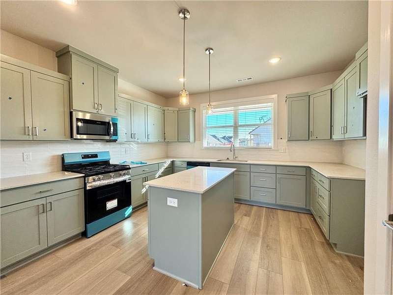 Fence, blinds and gutters included! Discover your dream home in the sought-after Osage Hills neighborhood. Frisco plan with garage on the left and East facing! 9 ft ceilings, linear electric fireplace, LVP flooring throughout the main living areas and primary bedroom, quartz countertops and more. Chef's kitchen boasting frigidaire stainless steel appliances, gas range, pantry, quartz countertops, bar pull handles, large island and gorgeous backsplash. Luxurious primary bedroom features abundant natural light, while the spa-like primary bathroom offers a walk-in shower, tub, double sinks, and spacious walk-in closets. Additional features include three large secondary bedrooms upstairs and a separate laundry room. Nestled on a generous lot with covered patio that overlooks the serene sodded, fully fenced backyard. Sturdy concrete siding & brick! Model home located at 6008 SW Coywolf St- Lot 122.