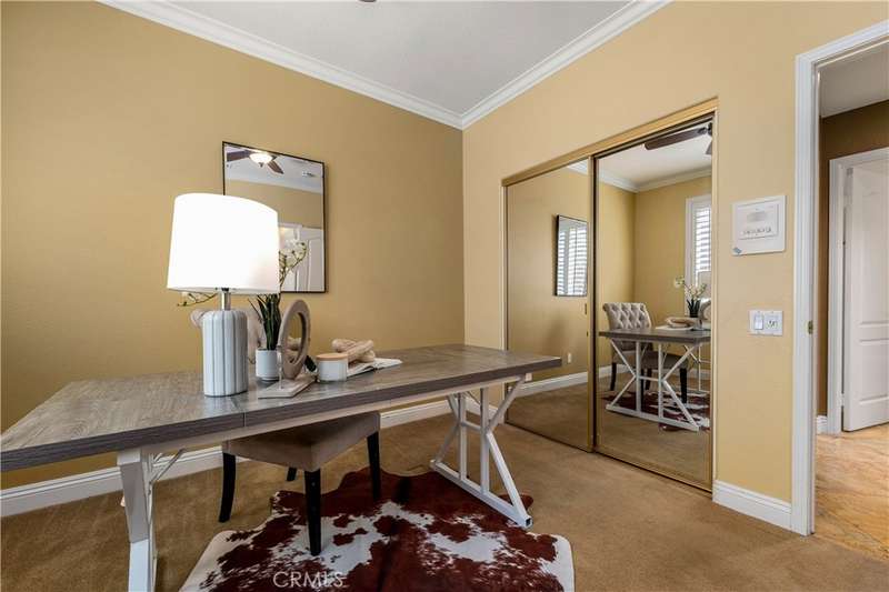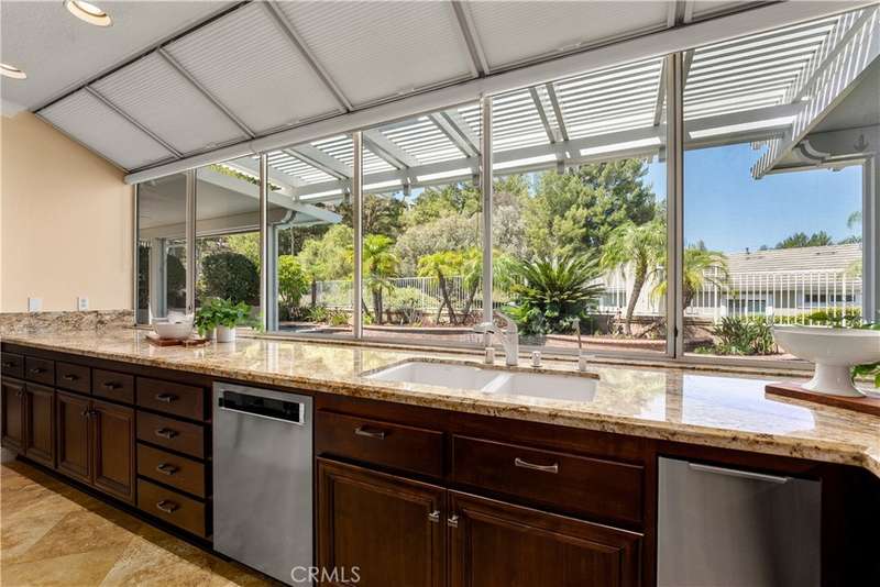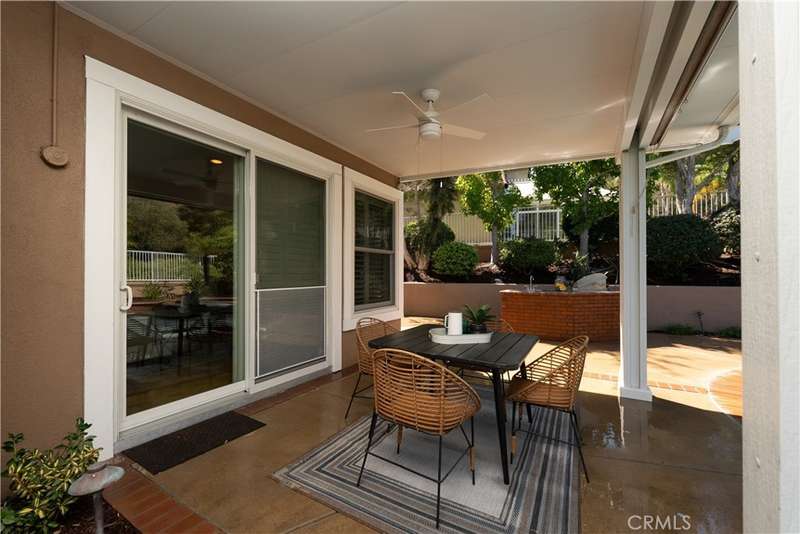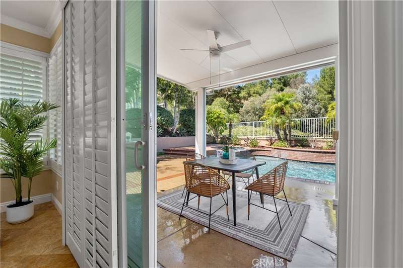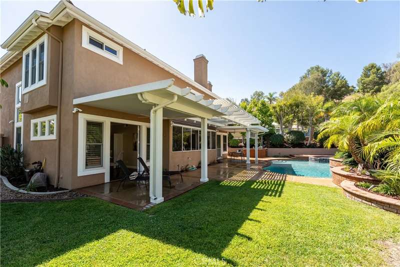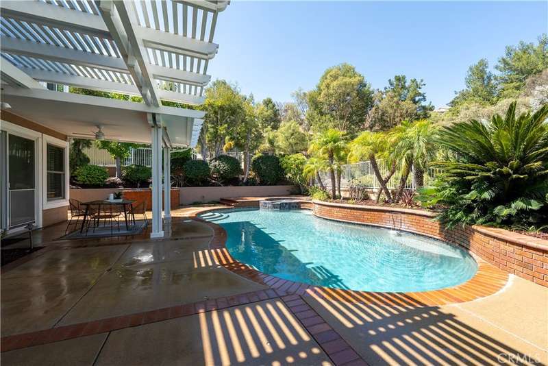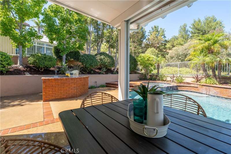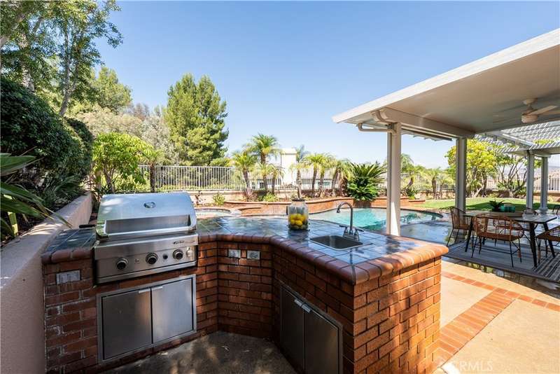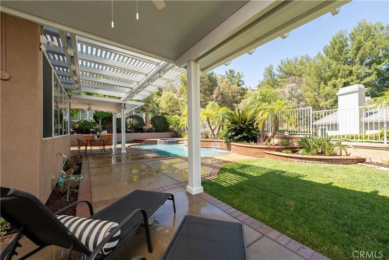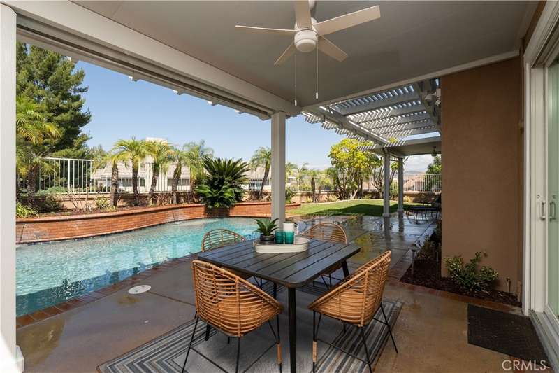 The backyard is truly the soul of this home--a resort-style haven where every detail is designed for entertaining and relaxation. Multiple Alumawood patio covers with ceiling fans and lighting create the perfect setting for outdoor dining. A built-in BBQ makes weekend gatherings effortless, while the pebble tek and salt water pool and spa invite endless hours of fun and tranquility.