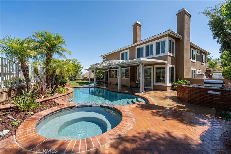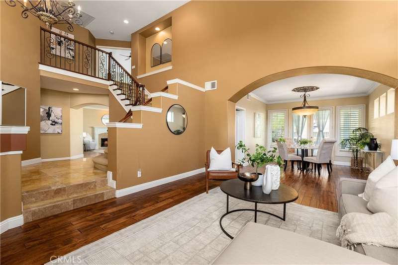 Step into a world of elegance and comfort at this stunning 5-bedroom, 4.5-bathroom pool home with partial views, perfectly located in the heart of Anaheim Hills. From the moment you enter through the double doors into the grand foyer beneath a sparkling chandelier, this home makes a lasting impression.