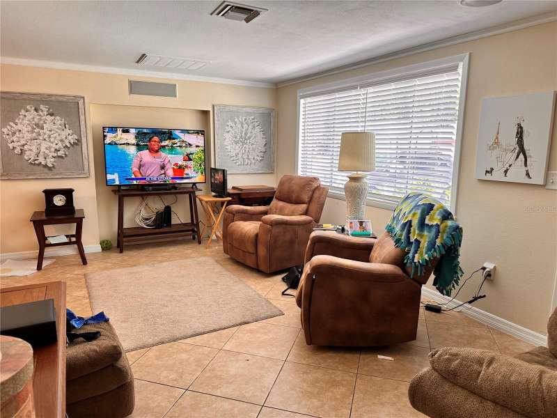 Discover move-in-ready convenience in this charming 2-bedroom, 1-bathroom home located on a quiet street in the friendly Beacon Woods neighborhood. Perfect for first-time buyers, downsizers, or as a cozy Florida retreat, this single-family home offers comfortable living and a host of community amenities. Enjoy 1,340 square feet of comfortable, well-lit living space with large windows in the family room. A bonus room just off the kitchen offers versatility as a sitting room, home office, or a spacious dining area. The kitchen comes equipped with stainless steel appliances, a stylish tile backsplash, and ample cabinet space. Both generously sized bedrooms offer plenty of space. One features sliding glass doors that open to the screened-in back porch, providing a peaceful and private sanctuary. Relax and entertain on the private, screened-in back porch, accessible from both the bonus room and one of the bedrooms. Convenient location: Positioned close to US-19 and Little Road, this home provides easy access to shopping, dining, entertainment, and the beautiful Gulf beaches. Beacon Woods community amenities: As a resident of Beacon Woods, you'll have access to fantastic community features: An 18-hole championship golf course A community clubhouse A refreshing swimming pool Tennis courts A family-friendly park Don't miss the chance to own a piece of the Florida lifestyle in this sought-after, welcoming community.