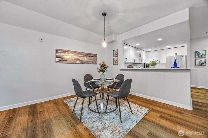 Live in the heart of the U-District at Sun Plaza—just blocks from UW. This fully remodeled 2BR/2BA condo with den is refreshed top to bottom with new flooring, paint, quartz countertops, upgraded lighting, fixtures, and stylish baths. The living area features a cozy fireplace and extends to the private patio—your retreat to enjoy coffee and the hum of the city. French doors open to a flexible den, while the kitchen shines with quartz counters, gas stove, and freshly painted cabinetry. Retreat to a primary suite with dual closets, plus a 2nd bedroom with its own walk-in closet. With secure parking, in-unit laundry, and effortless access to light rail, downtown Seattle, Trader Joe’s, restaurants, and theaters, this is city living at its best.