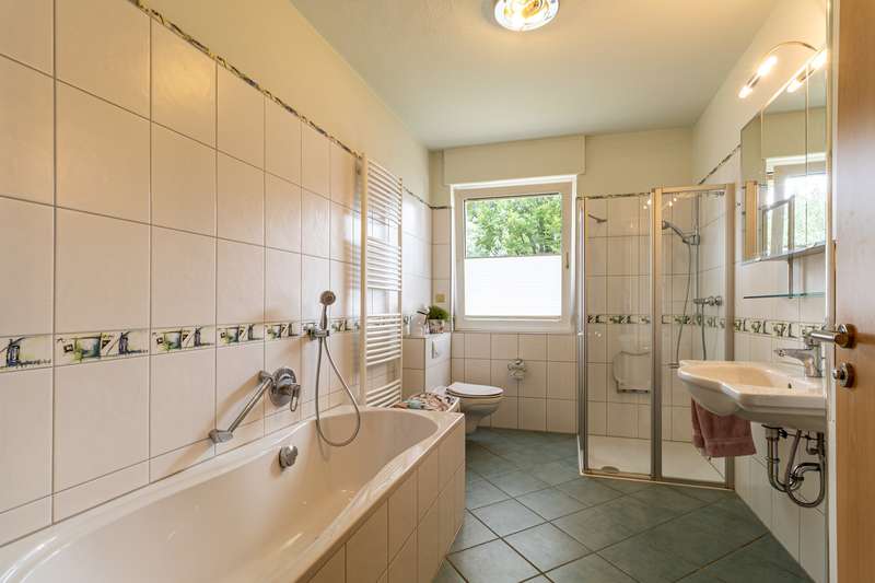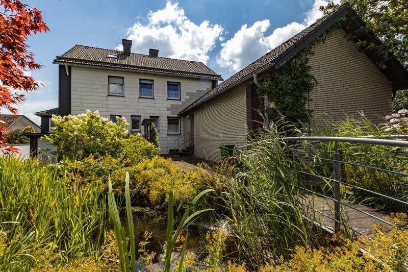 For sale is a well-kept two-family house with approx. 158.9 m² of living space on a spacious plot of approx. 886 m². Built in 1961, the property has been continuously maintained and was last modernized on the first floor in 2019. Whether as a classic family home, for several generations or as an office/practice - the house offers a wide range of possible uses. The well thought-out room layout comprises a total of eleven rooms, including five spacious bedrooms. Two bathrooms - one of which has been modernized - and two appealing guest WCs ensure comfort in everyday life. The layout is functional and home-friendly - ideal for families and professionals. The first floor was extensively renovated in 2019: The bathroom was renovated, electronic shutters installed and walls, doors and floor coverings modernized. Plan radiators complete the well-kept overall picture. The property impresses with its solid building fabric and numerous energy energy improvements that have already been carried out. The façade was partially insulated and clad with clinker bricks back in 1990. The first floor was extensively renovated in 1999: the bathroom was renewed and a guest WC installed, electric shutters were installed and the walls, doors and floor coverings were modernized. Plan radiators complete the neat overall appearance Further measures - such as insulated roller shutter boxes and closed radiator niches - further increase energy efficiency. The central heating ensures pleasant temperatures all year round. The fixtures and fittings meet a well-maintained standard that is geared towards the needs of modern living. The spacious, lovingly landscaped plot with idyllic pond and charming garden shed invites you to linger, relax and be creative. Whether a green paradise, adventure playground or quiet retreat - every idea finds its place here. This home is much more than just four walls - it is a place full of possibilities, inspiration and personal development An ideal home for families or professionals who value structure, functionality and a well-kept condition. Feel free to arrange a viewing appointment - we look forward to hearing from you!