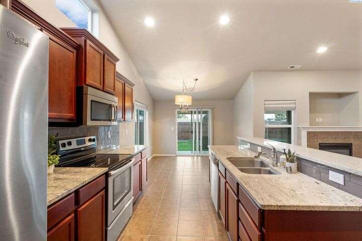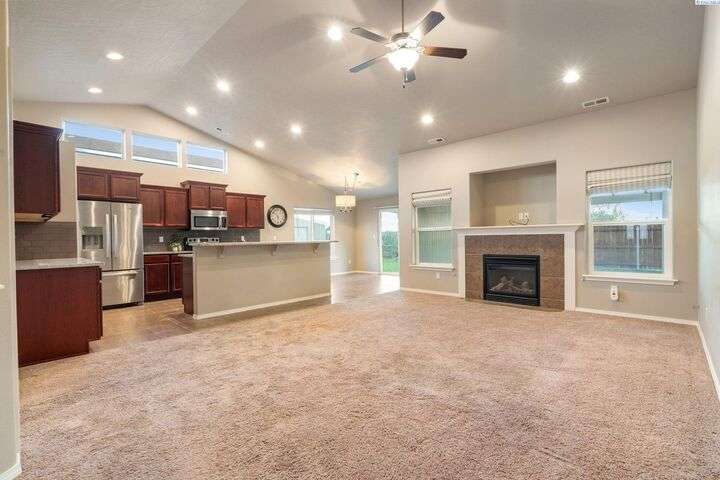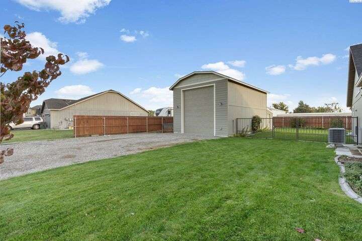 MLS# 288186 Nestled on a peaceful cul-de-sac with no neighbors behind, this well-maintained 3-bedroom, 2-bathroom home offers 1,816 square feet of open, airy living space. With a spacious and seamless flow between the kitchen, dining, and living areas, this home is perfect for both everyday living and entertaining. A cozy gas fireplace creates a warm, inviting atmosphere in the living room, while a covered patio just off the dining area offers a serene outdoor retreat. This home also features a versatile den, ideal for a home office, playroom, or additional guest space. The generous .29-acre lot provides plenty of room for outdoor activities, complemented by a fully finished shop with an RV bay door and an attached shed—perfect for extra storage, projects, or hobbies. Seller is offering $4,000 to use towards new carpets. Call today for a private showing!