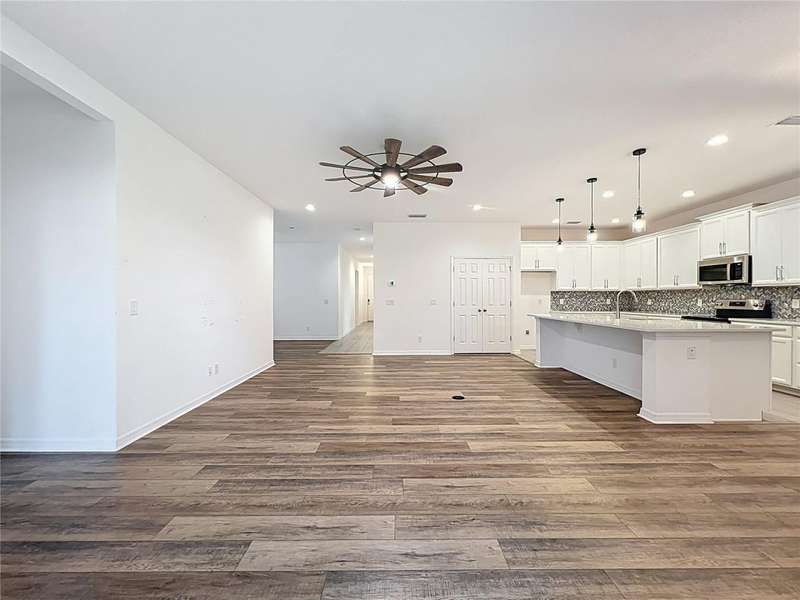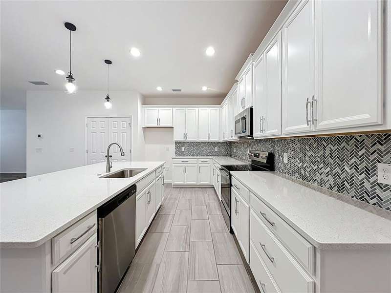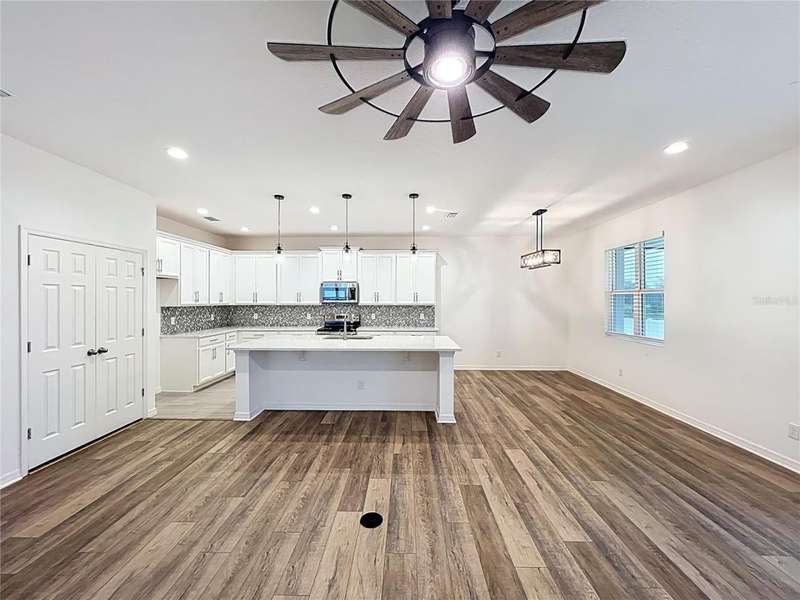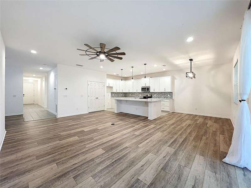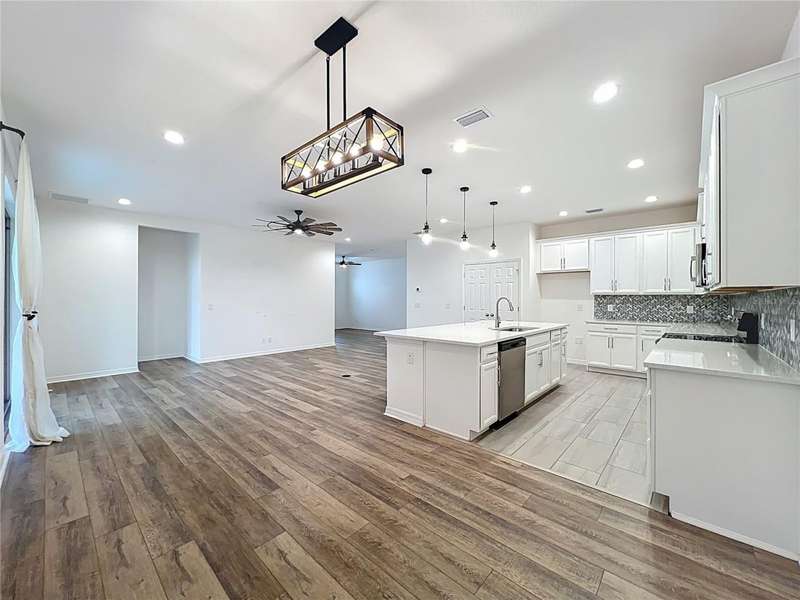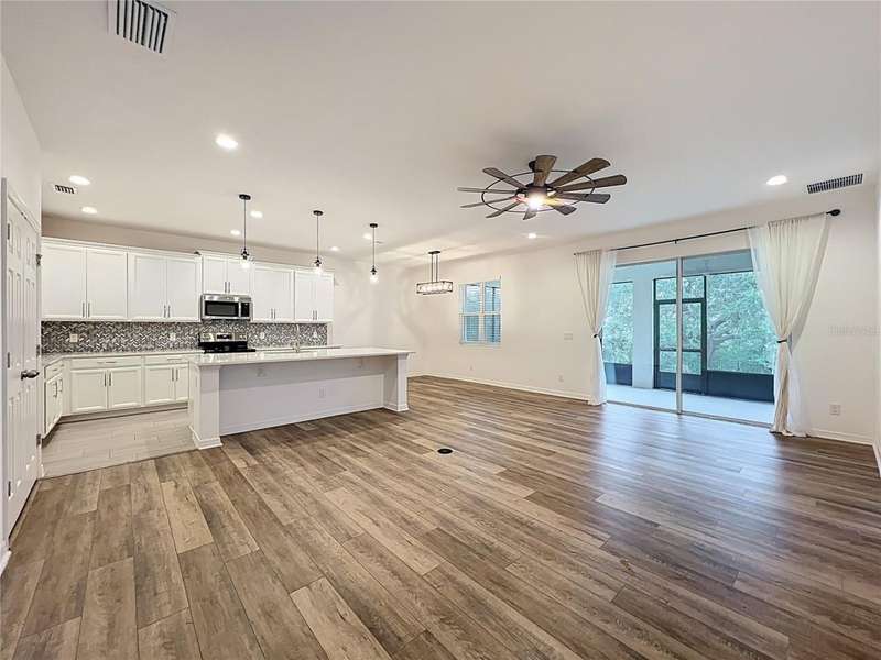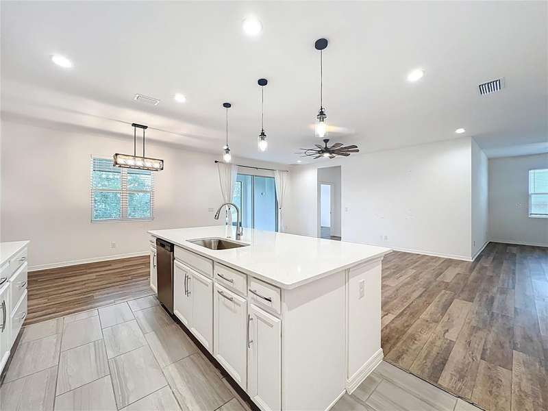 LAKE FRONT ON CLERMONT NORTHERN CHAIN OF LAKES! This 4-bedroom, 2-bath beautiful home is located on the vibrant Chain of Lakes in Northern Clermont. This scenic and versatile chain consists of Lake Lucy, Lake Emma, Cherry Lake, and the Palatlakaha River Waterway. Perfect for fishing, boating, skiing, air boating, and exploration! Home features many upgrades throughout: Termite bond, luxury plank vinyl flooring, beautiful ceramic tile, double pane windows, new landscaping in front, newly screened rear porch, and large fenced-in yard. Fantastic open kitchen with stainless steel appliances, quartz countertops, 42-inch cabinets, back splash, breakfast bar, pendant lighting, recess lighting, and large closet pantry. Floor Plan also features a split bedroom plan, an inside laundry room, a tray ceiling in the primary, dual sinks in both bathrooms, plus a bonus room that could be a formal dining room, office, exercise room, or playroom. So much to offer and only a 2-year-old home! Located in a wonderful community and on a dead-end street, the community dock and a pavilion are conveniently located next to the home. Also, features a community pool, playground, park, and sidewalks throughout. Great location too! Only 10-15 minutes to the FL Turnpike, 45 minutes to downtown Orlando, and all theme parks, and only 20 minutes to Historic Downtown Clermont. This charming downtown area features historic houses & buildings, retail shops, restaurants, breweries, & nightlife. And only 20 minutes South of The Villages. Are you ready to embrace the lakefront lifestyle today in this stunning nearly new home? Start your adventures by building your own boat dock and enjoy everything this beautiful setting has to offer!