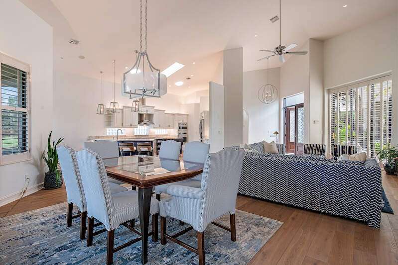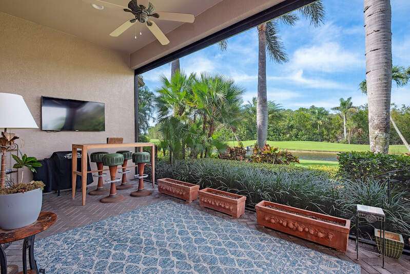 This beautiful custom-built home features recent updates, including a new tile roof and marble-faced fireplace. IN ADDITION, THE SELLER HAS A FULLY TRANSFERABLE GOLF MEMBERSHIP! The spacious chef's kitchen has custom cabinetry, a large walk-in pantry, and newer appliances. Custom 8ft. solid core doors and premium hardware throughout. Plantation shutters and 10ft. sliding glass doors open to the pool courtyard and guest cabana, Custom lighting, skylights, a home office, a central vacuum system, and a heated pool/spa with a waterfall, are just some additional amenities to make your living here a joy. Other notable features include an AqualLink control system, storm shutters, a 2-car garage, brick pavers, and a tropical courtyard. The golf course, lake, and mangrove views from your screened lanai are stunning. Windstar has a Tom Fazio-designed golf course, and clubhouse with spectacular views of Naples Bay and 72 slip deep water marina, affording direct gulf access in less than 10 minutes. The club has clay tennis courts, a fitness center, and the Keewaydin Island Beach Club with a boat shuttle and private membership.