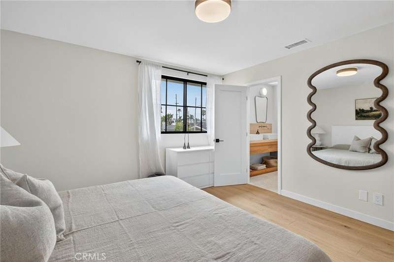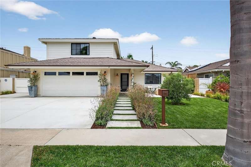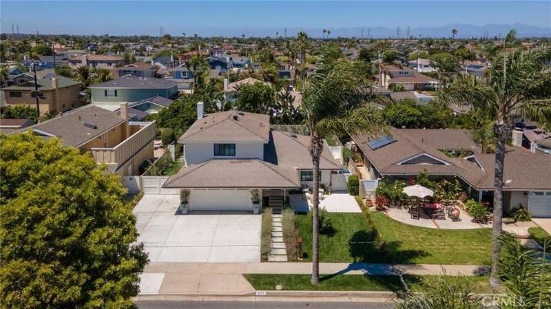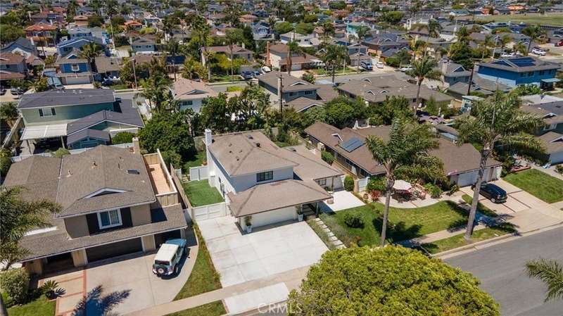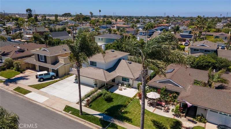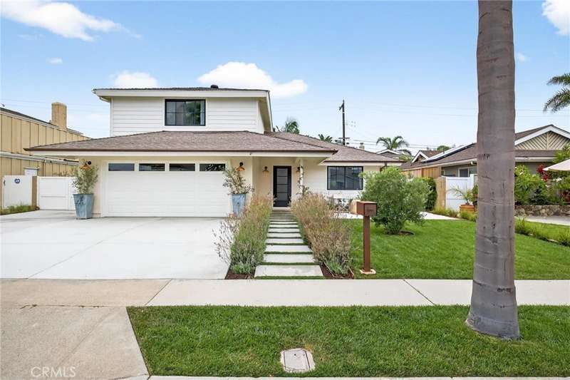 Step into coastal elegance with this stunningly renovated home, perfectly nestled in one of the most coveted neighborhoods just a short stroll from the beach. A formal living room welcomes you with timeless charm and flows effortlessly into a refined dining area and a chef-inspired kitchen adorned with exquisite natural stone countertops, sleek Italian cabinetry, and a top-of-the-line Bertazzoni suite including a 36-inch gourmet range, refrigerator, dishwasher, and custom hood insert. The open-concept design continues into the inviting family room where a cozy fireplace, custom built-ins, and sliding glass doors create a seamless transition to the expansive and beautifully landscaped backyard, an entertainer’s dream. The main level also features a luxuriously remodeled bathroom and a thoughtfully designed laundry room with a sink and generous counter space. Upstairs offers three serene bedrooms including a sun-drenched primary suite with a spa-like en-suite bathroom featuring dual vanity sinks, and two additional bedrooms that share an elegantly updated hallway bath. Designer details abound with engineered hardwood flooring throughout, fresh interior and exterior paint, new landscaping with a full irrigation system, and a modern tankless water heater. Smart home features include pre-wiring for security cameras, in-wall 5.1 surround sound in the living room, and Coax and Cat6 connections in each bedroom and living area. With rare RV parking and hookups, this oversized lot provides ample space for all your ocean toys or even a future pool. Located just moments from award-winning schools, fine dining, boutique shopping, the iconic pier, Pacific City, and Newport Beach, this exceptional home offers the ultimate blend of luxury, convenience, and the Southern California coastal lifestyle.