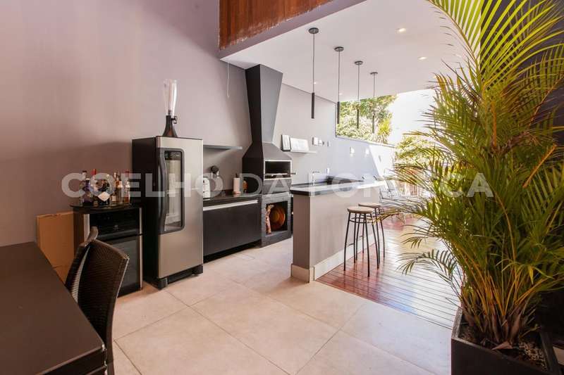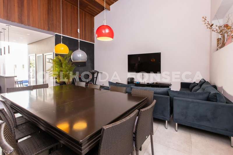 Casa no bairro Brooklin com 468m² área construída, 5 dormitório(s), 5 suíte(s), 2 vaga(s), 5 banheiro(s), piscina, escritório, sauna, mobiliado (a), ar condicionado, dep. de empregados, reformado (a), varanda, aquecedor solar, pé direito duplo.