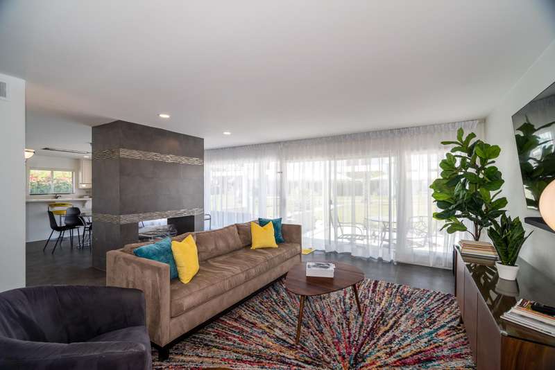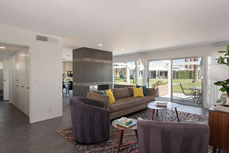 Fabulous Mid-Century home located in Tamarisk Rancho. This home is registered with the Historic Preservation of Rancho Mirage and gives the feeling of classic Palm Springs vibe! This 3 bedroom, 3 bath home is loaded with amazing views and friendly neighborhood charm and plenty of views. New tiles and see through fireplace has been added to enhance your relaxing stay. The wall of windows looks out to the beautiful greenbelt of the 16 homes that encircle the large welcoming community pool. The kitchen and baths have been updated and the front and back patio have plenty of room to entertain family and friends, all while watching the beautiful mountain sunsets. This home will not disappoint! Newly installed solar. Call now to book this one-of-a-kind rental. Limited availability.
