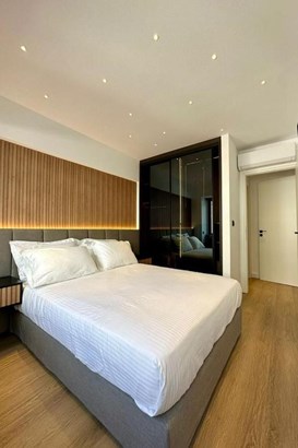 Elegant 40sq.m. apartment in Piraeus on the 7th floor, featuring 1 bedroom and 2 bathrooms. This stylish space includes air conditioning, double glazed windows, a security door, and electric appliances.