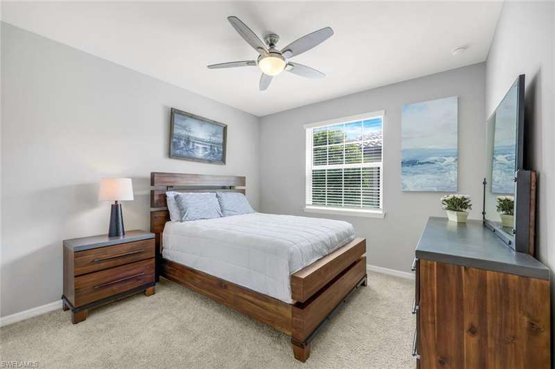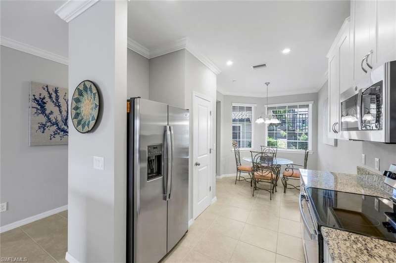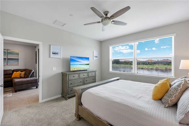 Live the resort lifestyle at Esplanade! Available for a minimum 30-day stay, this immaculate two-bedroom plus den, two-bath first-floor end-unit condominium offers the perfect Naples getaway. Lightly lived in and never previously rented, this residence features an open, airy floor plan filled with natural light, multi-sliding glass doors, and a private lanai with breathtaking lake and golf course views. For periods of relaxation, each bedroom and the living area, are equipped with smart TV's. The unique positioning provides both beauty and privacy enjoy spectacular sunsets over the lake without direct glare into the living space. Inside, the condo is beautifully appointed with tile flooring throughout, ceiling fans in every major room, white shaker-style cabinetry, GE stainless steel appliances, and a detached one-car garage. Your rental includes a club/sports membership, granting access to Esplanade s resort-style amenities: a spectacular pool with cabanas and the Bahama Bar, tenni