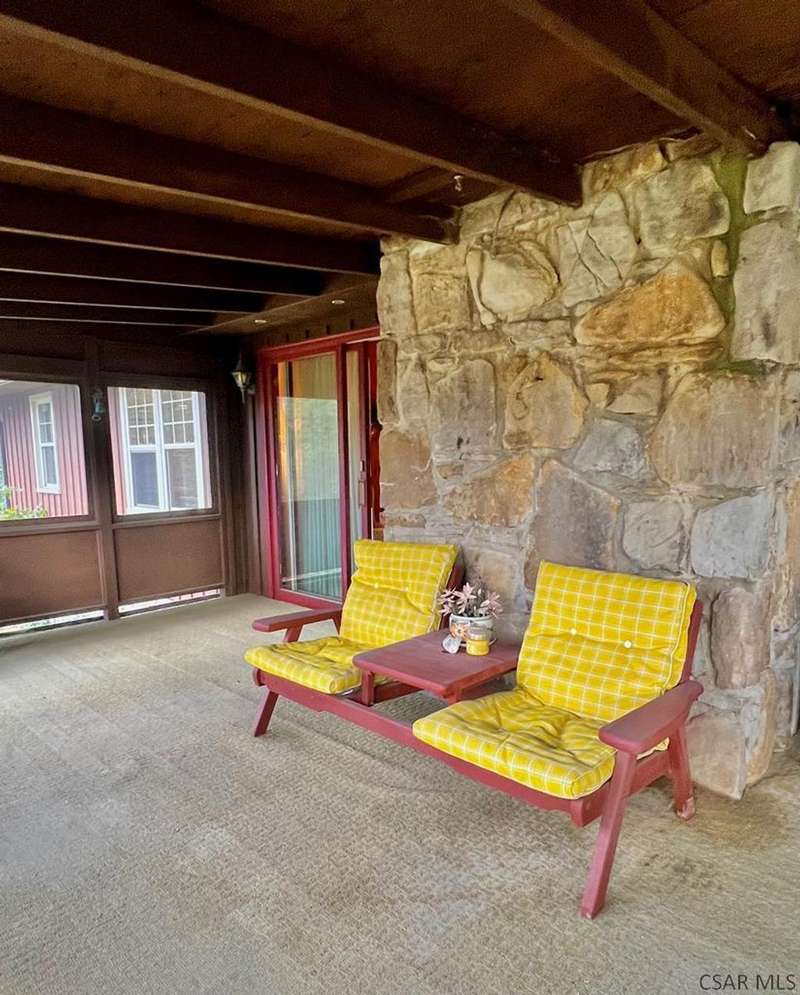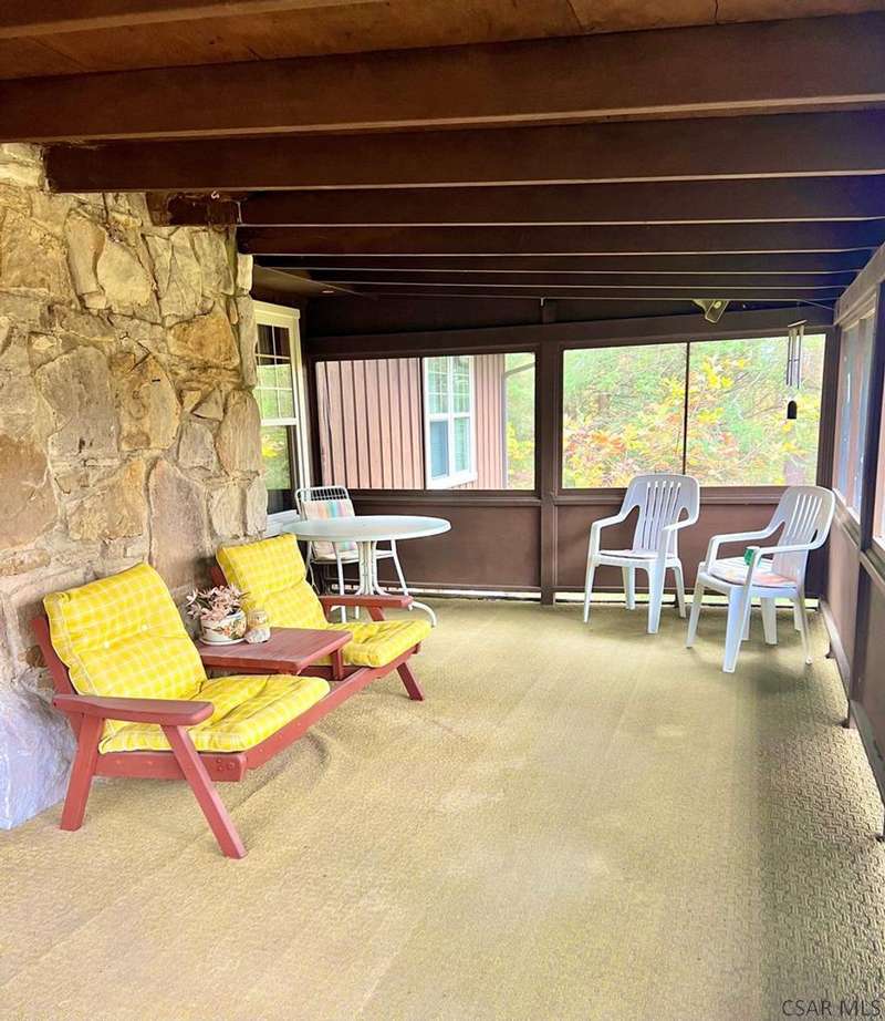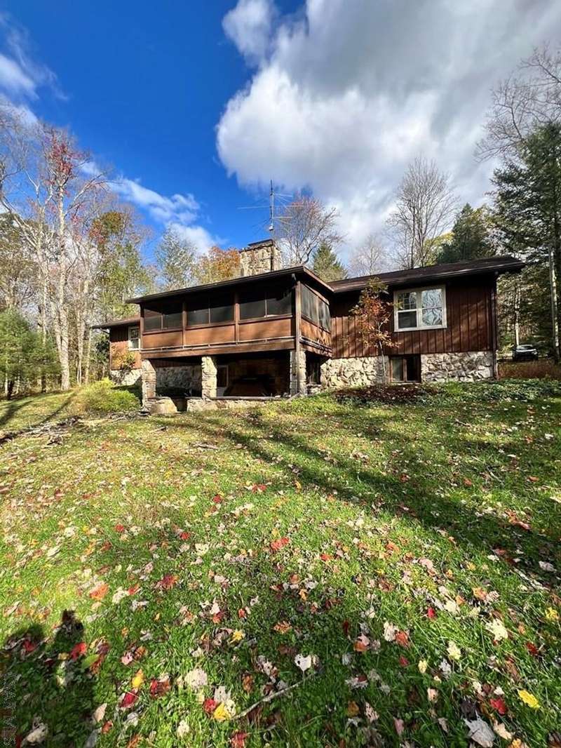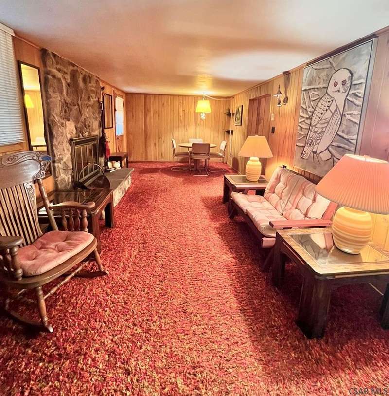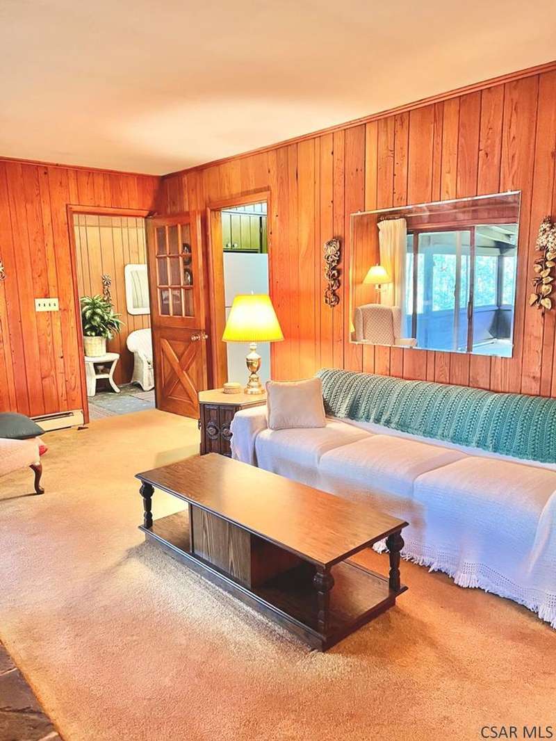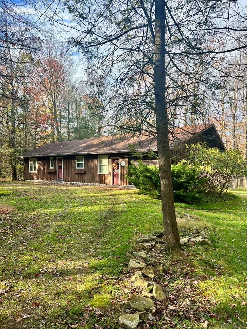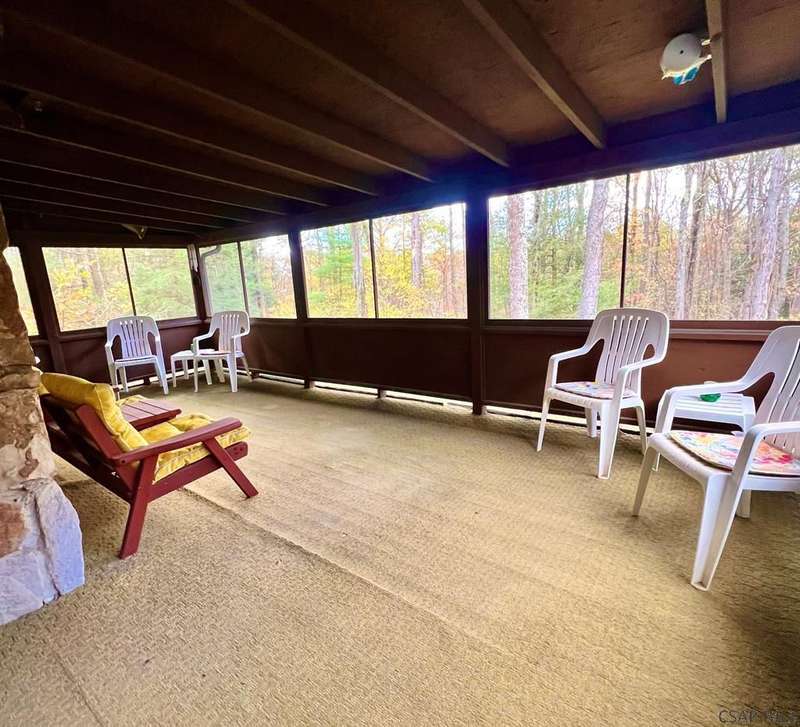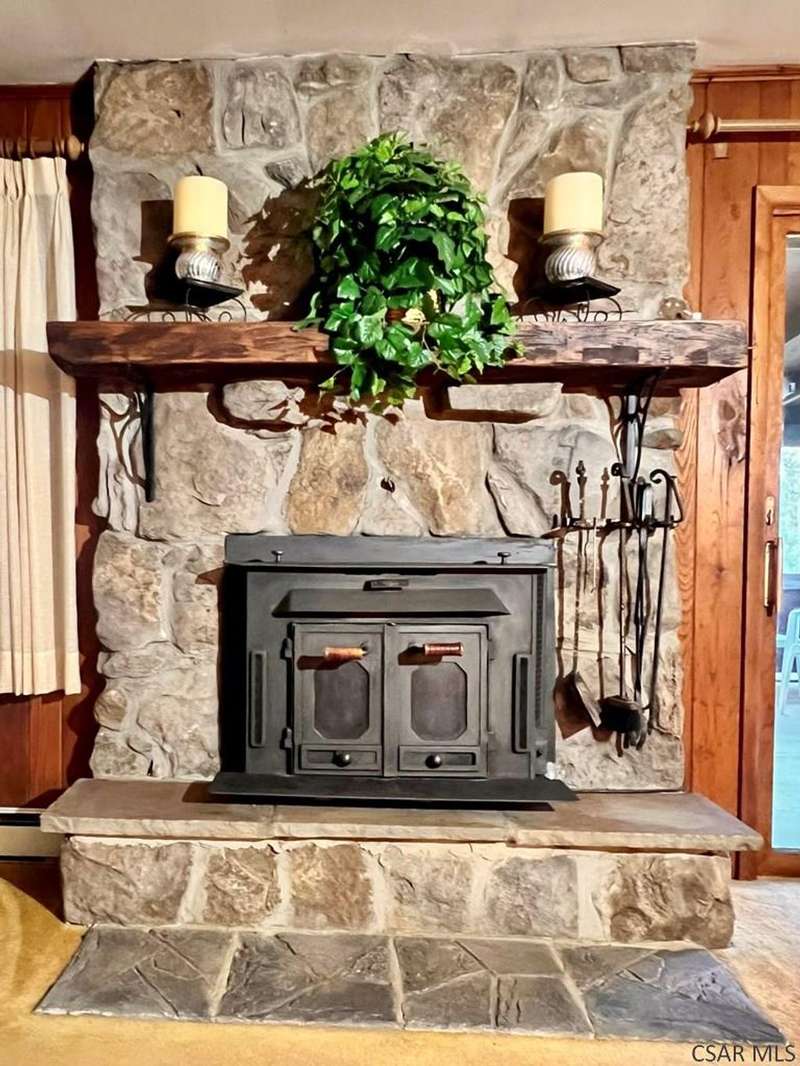 Imagine living in the heart of the Laurel Highlands. Surrounded by hiking and biking trails, swimming, kayaking, fishing, skiing, ATV riding, golfing, snowmobiling, and more! This mountain retreat includes two lots totaling 1.34 acres inside The Kings Mountain Resort. The low HOA fees include road maintenance and access to a private swimming lake and pavilion. There is also a public golf course and winery just a few minutes away! Feel the tension of the day fade away as you walk into the welcoming breezeway. As you enter through the Dutch door into the living room, you'll find one of the two stone fireplaces and the screened-in porch, where you can relax and take in nature's beauty. There are also two bedrooms, one full bath, two hall closets, and a kitchen with custom-milled cabinets. Downstairs are two newly updated bedrooms, laundry room, half bath, utility room, family room with a second stone fireplace and the lower patio with amazing stonework. Mostly furnished. Move in ready!