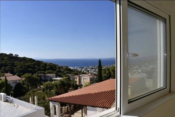 A modern detached house of 364m2 total area is located in a quiet residential area in Saronida, offering unique sea and mountain views.