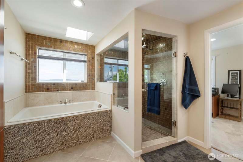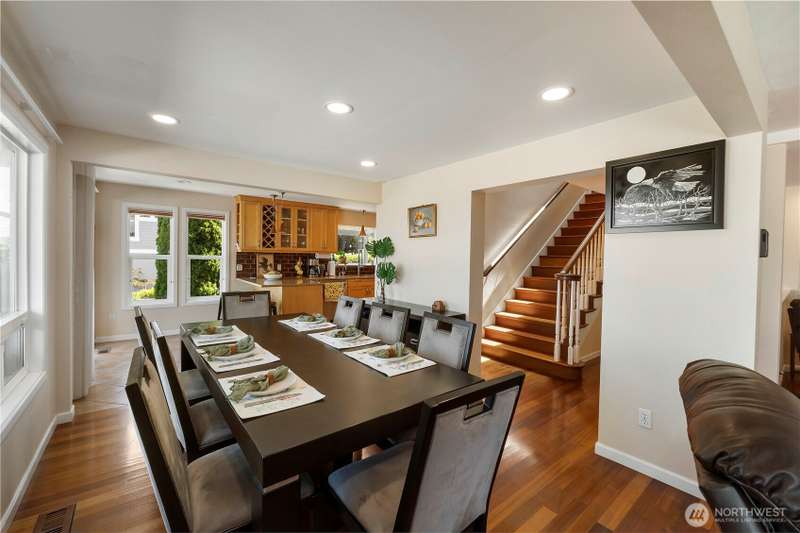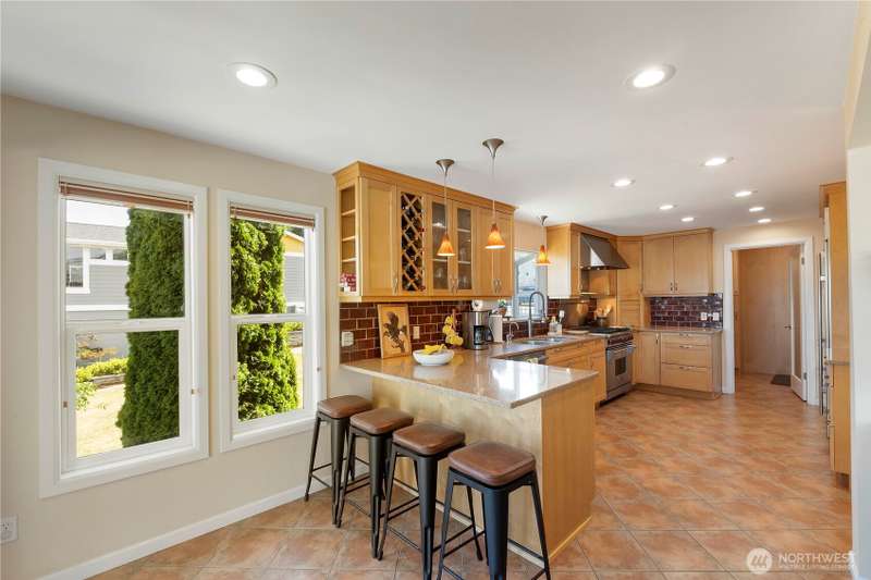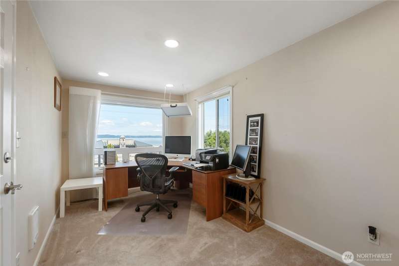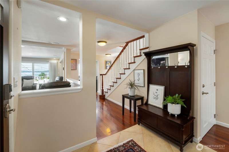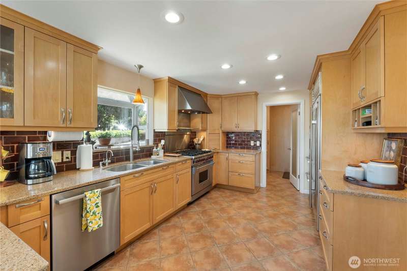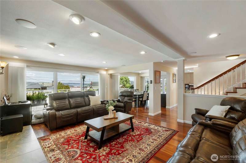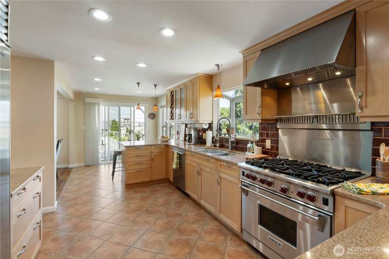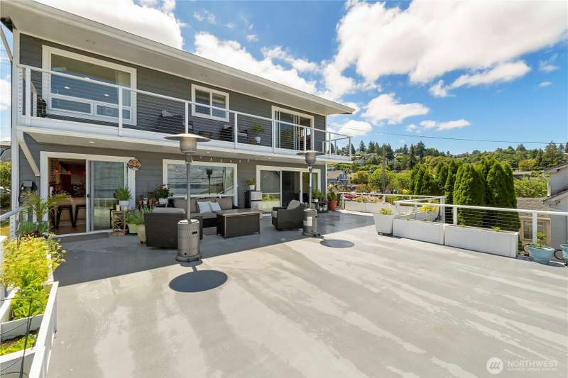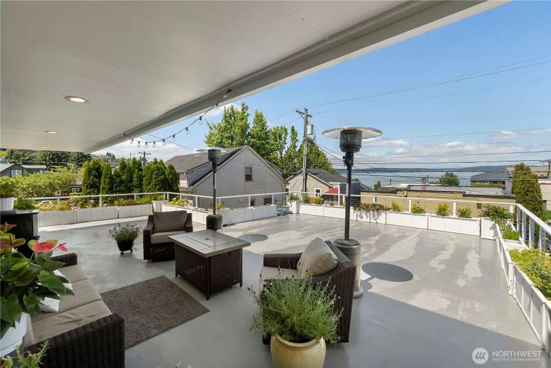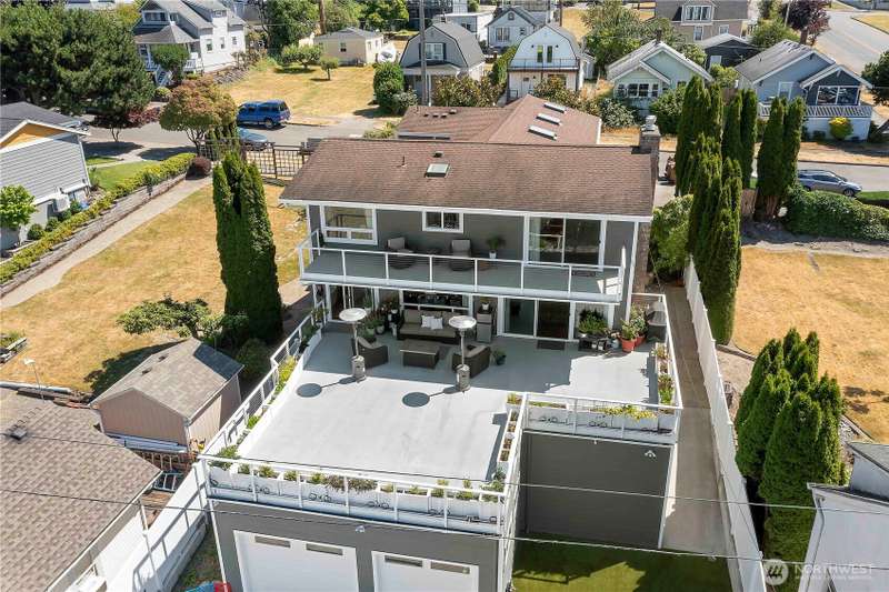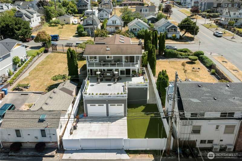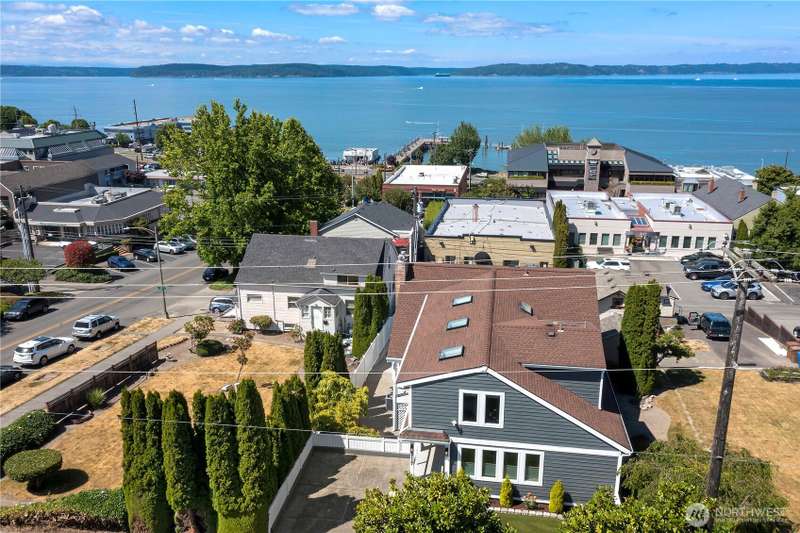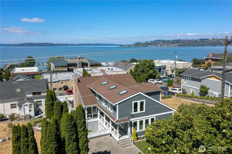 Exceptional Old Town residence, meticulously updated and thoughtfully maintained throughout current ownership. Highlights include rich Brazilian hardwood floors, a chef’s kitchen featuring a Wolf 6-burner gas range, Sub-Zero refrigerator, walk-in pantry, and custom maple cabinetry.Generous dining area flows to a 900 SF deck w panoramic Commencement Bay views. Five well-appointed bedrooms include options for both main-level and upper-level primary suites. The garage boasts 13' ceilings w capacity for 4 tandem vehicles, large area (possible "person" cave?) with reinforced wall for tennis, a home gym, and 750 SF of workshop space. Alley access leads to additional parking and the garage. Low-maintenance turf lawns and fully fenced backyard.
