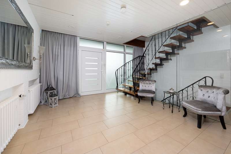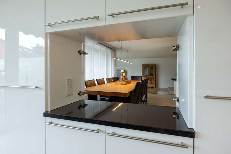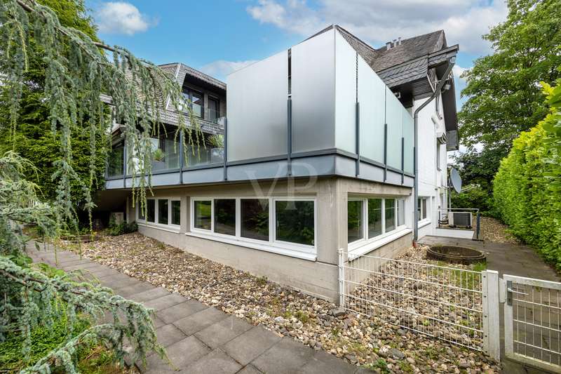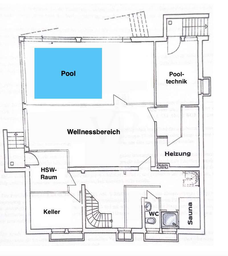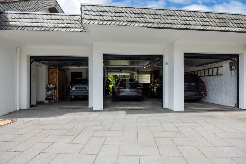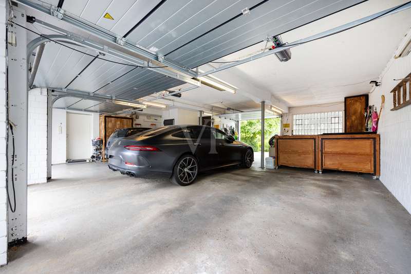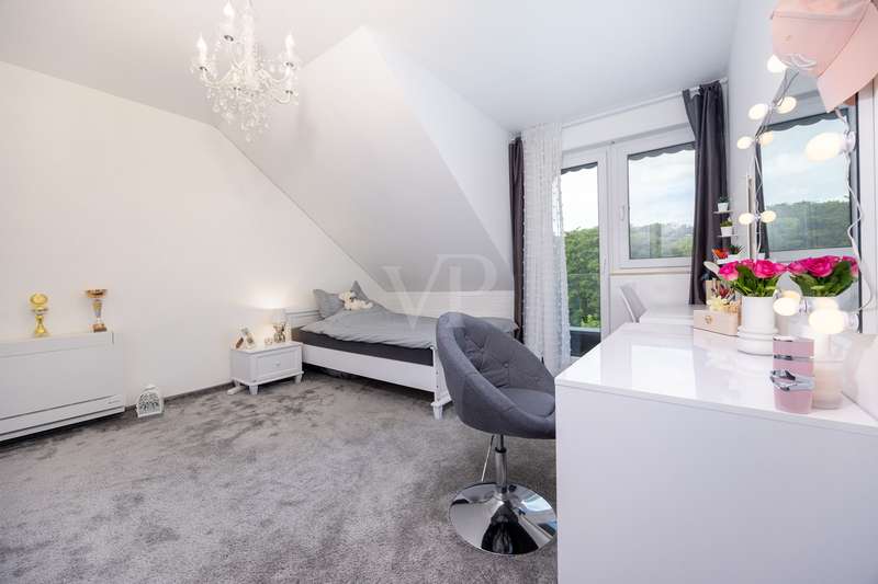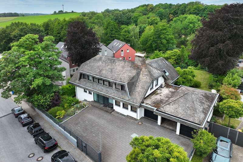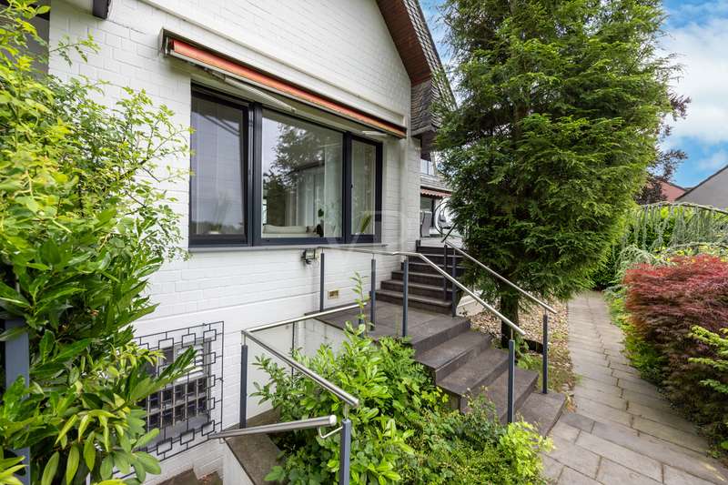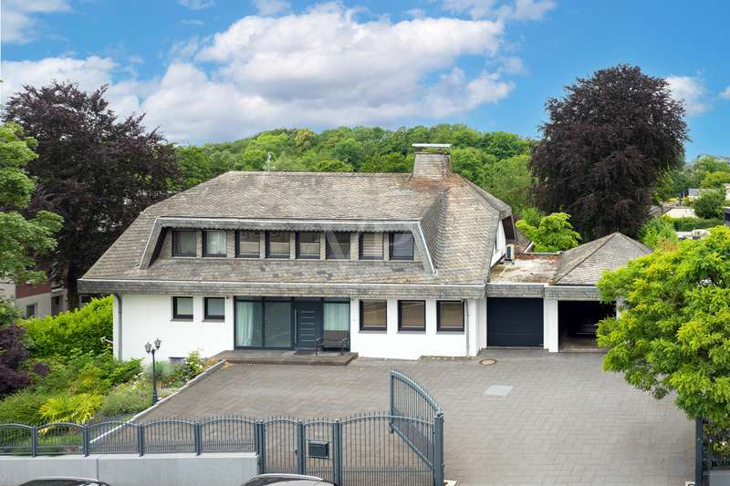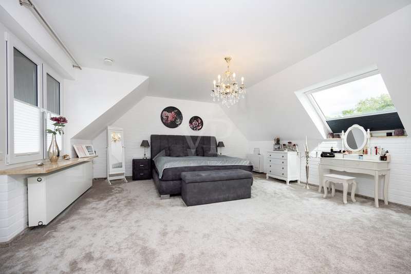 For sale is a spacious villa with a living area of approx. 285 m² on a large plot. The property, which was last extensively modernized in 2017, combines traditional design with modern amenities and meets the highest standards of living quality. Upon entering the house, you are greeted by a spacious entrance hall, from where you can access the upper floor, the cloakroom or the spacious dining and living area. The spacious living area, with fireplace, combined with a dining area offers plenty of space for sociable evenings and relaxing hours. The large window front provides a pleasant incidence of light, which bathes this area in a friendly atmosphere. Directly adjacent is the modern kitchen, which impresses with high-quality appliances and stylish furnishings and offers the ideal space for culinary delights. With five bedrooms, the house offers more than enough space for a large family or guests. Each bedroom is individually designed and furnished with high quality materials, three bedrooms have air conditioning to ensure comfort and privacy. Three fully equipped bathrooms, which were also modernized in 2017, offer modern comfort and meet high standards. High-quality tiles and fittings underline the exclusive furnishings. The condition of the detached house can be described as very well maintained. The most recent modernizations ensure that the house fully meets today's living requirements. The furnishings are of an impressively high standard and convey an excellent feeling of living. The house is heated centrally by a modern, state-of-the-art oil heating system. This ensures comfortable warmth even in colder seasons. The outside area of the house offers numerous possibilities for individual design. The spacious garden area invites you to relax, play or enjoy outdoor activities. Special highlights of the detached house are the private swimming pool and the integrated sauna in the basement. These amenities transform your home into a place of relaxation and recreation. The adjoining relaxation area invites you to leave everyday life behind and unwind. Overall, this property offers exclusive living quality combined with generous space and first-class furnishings. The location in a quiet yet well-connected area offers the ideal mix of relaxation and urban proximity. Schools, shopping facilities and public transport are just a few minutes away. It is perfect for buyers looking for a spacious and modern home. Arrange a viewing today and see the benefits of this home for yourself.