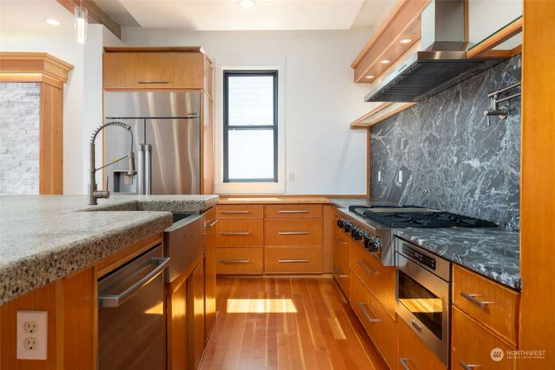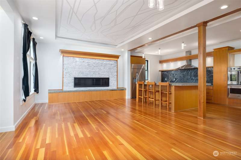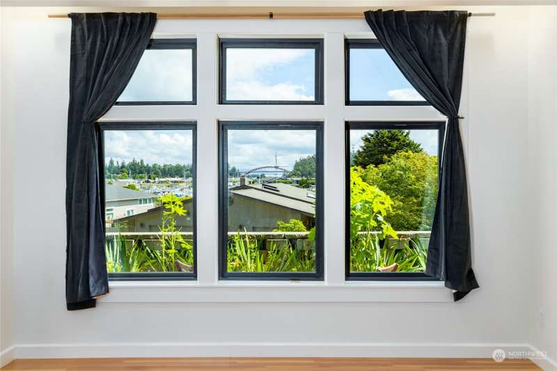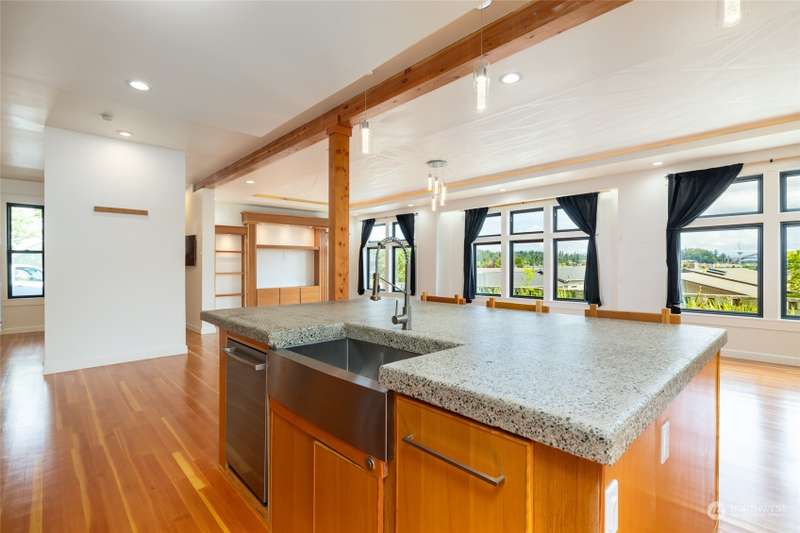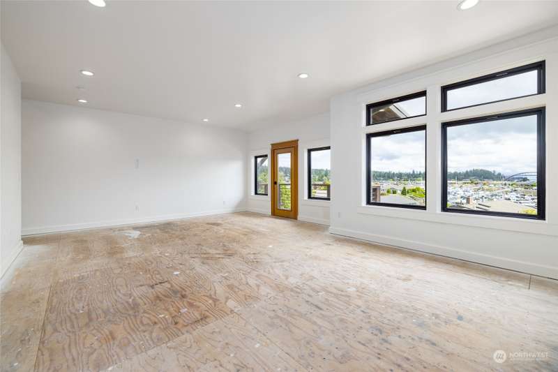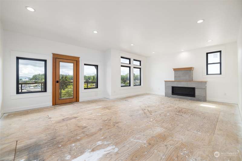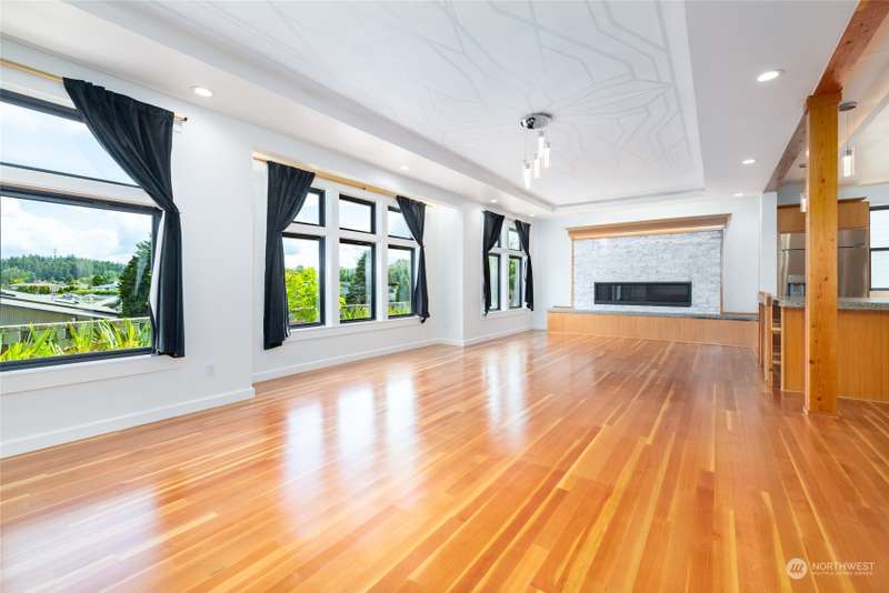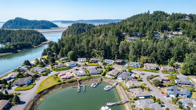 Stunning architecture & views of La Conner’s “Rainbow Bridge” greet you through walls of windows as you enter this custom home located in the Shelter Bay Community. Built with attention to detail at every turn. Large main living features built-ins, recessed ceiling & fireplace opening to chef's kitchen with beautiful granite backsplash & counters, double oven & oversized island. Family room with tiled floors, built-in storage, fireplace & access to backyard patio perfect for quiet moments & summer BBQs. Upper primary enjoys views, fireplace & private balcony as well as a breathtaking primary bath. Utility room & 3 additional bedrooms up. All that is left to be done on this one-of-a-kind home is upstairs flooring in the bedrooms and hallway.