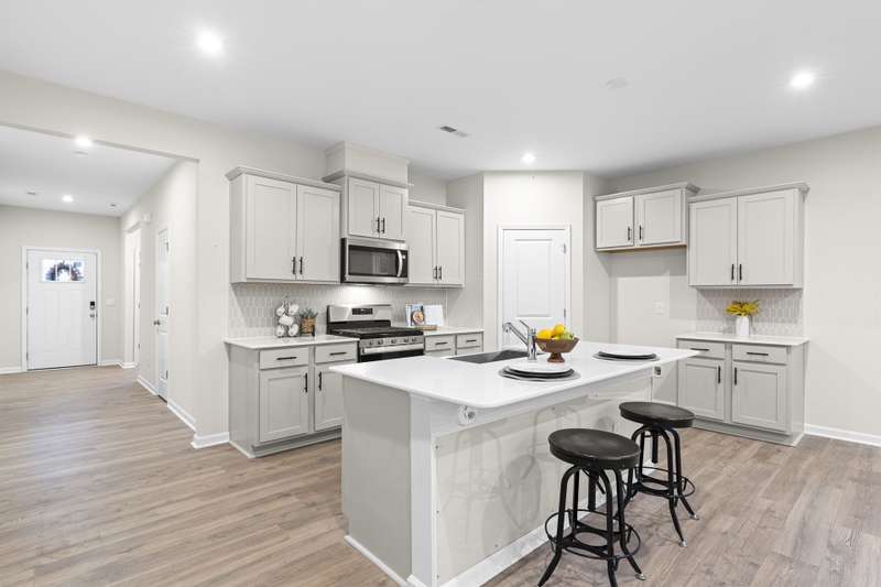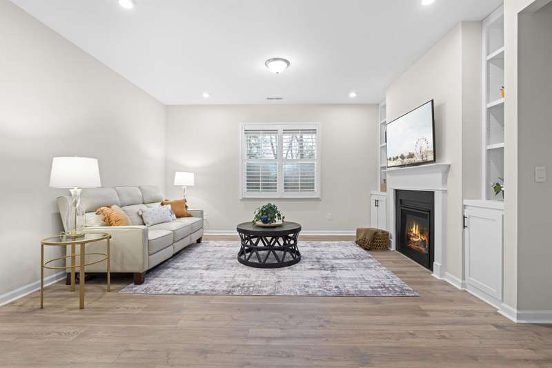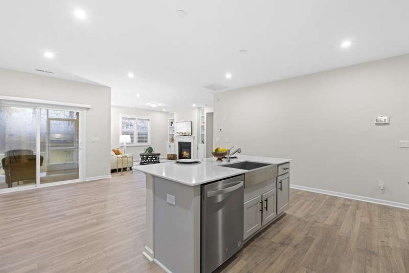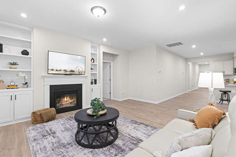 Welcome home to this rare FOUR bedroom, 2 bath, 2 car garage RANCH home on over a quarter acre. This is true, one-level living at its best. Use all four bedrooms or only three and have a dedicated office, den, or playroom. The large open kitchen with beautiful quartz countertops and stylish backsplash flows seamlessly into the living room, featuring a gas fireplace flanked by built-in shelving. The spacious owner's suite features a walk-in shower and a large walk-in closet with custom shelving. The private screened porch, off of the kitchen, is perfect for relaxing with your morning or evening beverage of choice, overlooking the backyard protected by a wooded buffer. A convenient drop zone off the garage with a bench leads right to the laundry room for any messes that need to be cleaned immediately. This home features many fine details and upgraded finishes, such as upgraded blinds, pre-wires for ceiling fans, a tankless water heater, fiber cement siding, and a one-year home WARRANTY. It truly is a must-see in a fantastic neighborhood with sidewalks, access to scenic walking trails, and a community pavilion. Close to recreation, restaurants, shopping, and grocery stores!