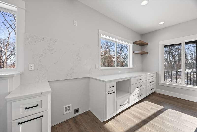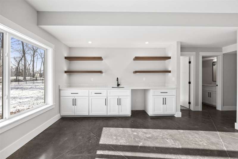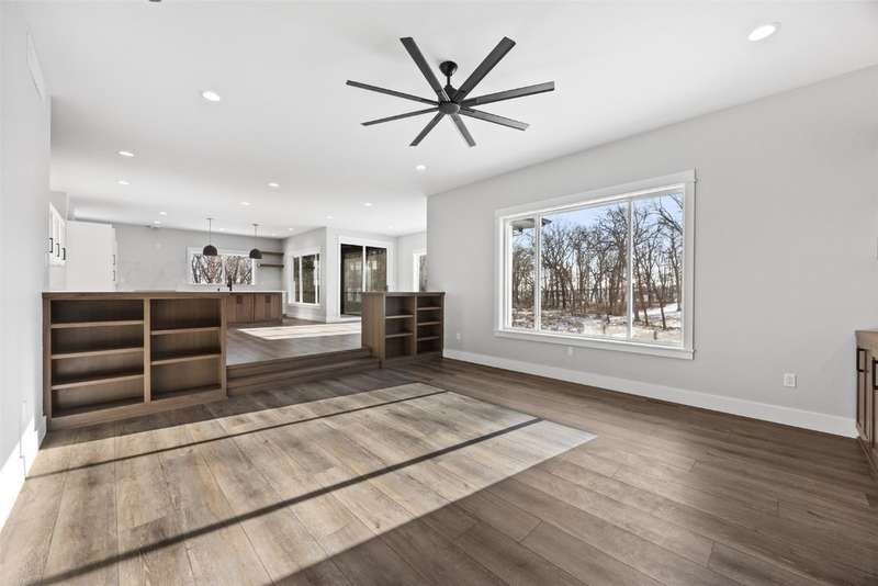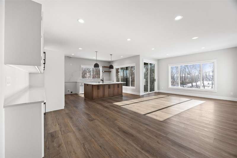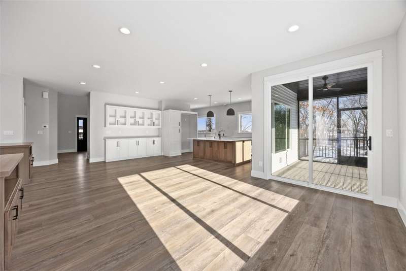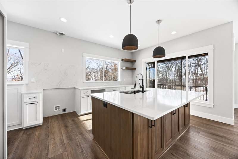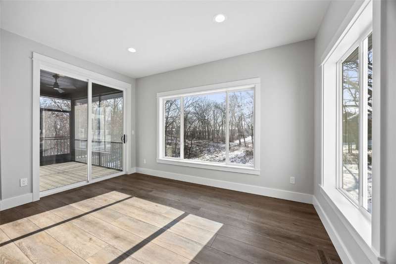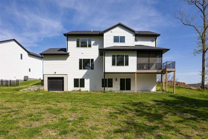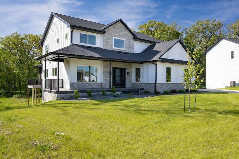 Stunning custom built two-story home on a wooded lot! Features include custom shaker cabinets and trim, a large kitchen and dining area with a nook, light colored quartz countertops, walk-in pantry and a 7 foot walnut island milled from black walnut trees on the property. Walk out to your screened-in porch to enjoy your morning coffee surrounded by nature or recharge on the expansive front porch. The kitchen overlooks the cozy sunken living room with walnut shelving and an electric fireplace. Floating stairs lead to the upper-level with 4 bedrooms. The luxurious primary ensuite is an oasis with a trey ceiling, a huge soaking tub, tiled shower and heated floors. The walkout lower-level features 2 additional bedrooms, black polished concrete, a gas fireplace, wet bar, and a huge bonus room with epoxy flooring. A garden garage and large cold storage room is perfect for the garden lover.
