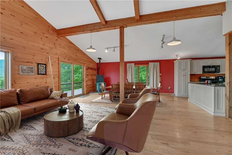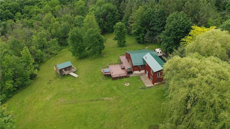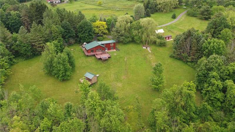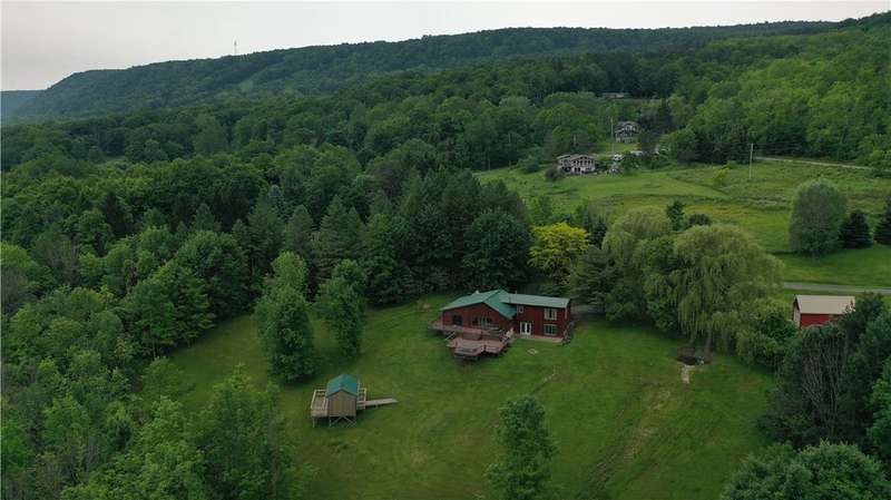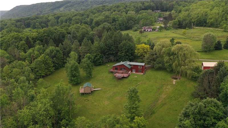 Updated contemporary raised ranch tucked away on over 10 partially wooded acres with a private blacktop drive off a secluded road. Enjoy numerous hiking trails, excellent hunting opportunities, and stunning views. The home features 2 bedrooms and 2 baths, (room for additional Bedroom on lower level) spacious open first floor kitchen-dining-living area, granite countertops, stainless steel appliances, a one-car detached garage, and 2 large sheds for plenty of storage, blending convenience and comfort with nature. Just minutes away from the charming village of Naples. This unique property is a real deal. Private, Peaceful, and full of character?don't miss it.