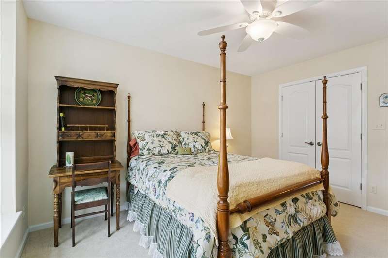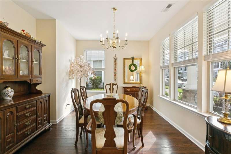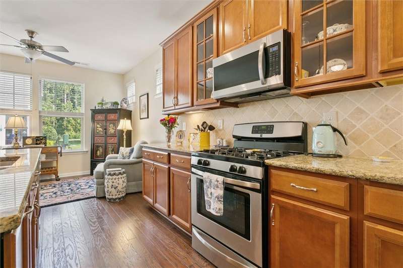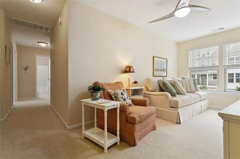 Light & bright, two story end unit townhouse located in the Village Green North section of Quarterpath within the City of Williamsburg. Low taxes & easy living with all exterior & yard maintenance included as well as, trash & snow removal. Featuring an open floor plan with wood floors which flow between the living, kitchen & dining spaces. The kitchen has a large island, granite countertops, gas cooking & large pantry. The breakfast area overlooks the rear patio. The front room is being used as a formal dining room. There are glass doors which would allow flexible use of the space. The large primary bedroom is on the second floor & has beautiful windows & an ensuite bathroom. The bathroom has separate sinks, a tub & shower, linen closet, separate water closet & WIC. The second & third bedrooms have hall access to a full bathroom with dual sinks & a linen closet. The two car garage has built in cabinets & hanging rack system, great for storage. The home has been freshly painted & the owner had new plush carpeting installed. Amenities include: Swimming Pool, Clubhouse, & Exercise Room. Great location, easy access to the interstate, shopping, restaurants and more! There is a 3D Tour