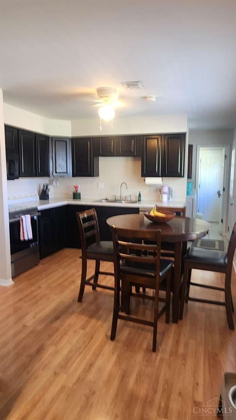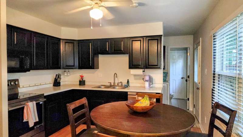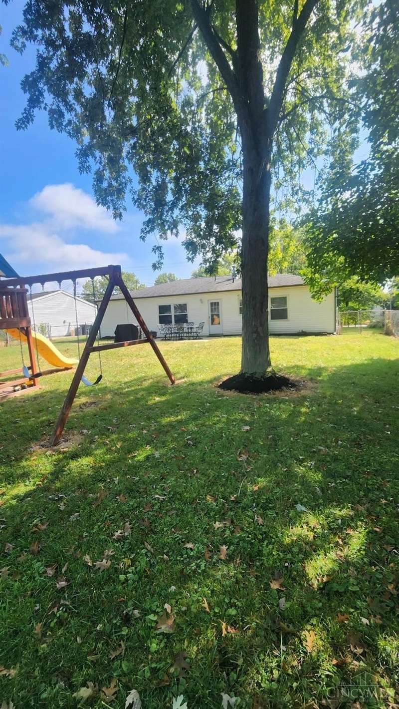 Cute as a button. Move in Condition! Freshly painted neutral. New Stove and Dishwasher. Fenced backyard. Huge Concrete patio. Swing set stays. Primary Bedroom has half bath attached.