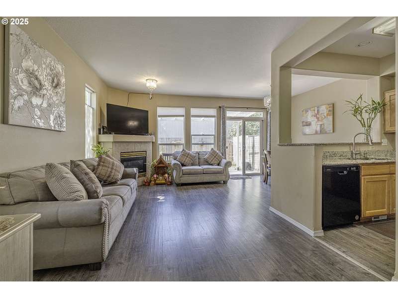 Open House July 26 12-2pm. Now offered at $387,000. This charming and spacious home is tucked away in a uniquely designed cul-de-sac neighborhood that offers both privacy and character. Featuring 3 bedrooms and 2.5 baths, the open-concept main level is filled with natural light and includes a cozy living room with gas fireplace, dining area, and kitchen—all flowing seamlessly to a perfectly sized backyard through a sliding door. New dishwasher and microwave 2025. Upstairs, you’ll find all three bedrooms, a convenient laundry area with washer and dryer, and a full hallway bath. The oversized primary suite boasts abundant windows, two large closets, and a full ensuite with dual sinks.Enjoy the convenience of an attached one-car garage, extra driveway parking, plus shared visitor spaces. This inviting home makes an ideal starter—say goodbye to renting and start enjoying the benefits of homeownership in this delightful unit!