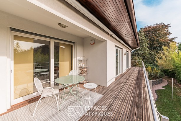 Situated 15 minutes from Strasbourg in a residential area, this family home spans 276 m2 of land with a 14-acre swimming pool. In 2020, it benefited from a high-quality contemporary renovation to bring out all the potential of the property.