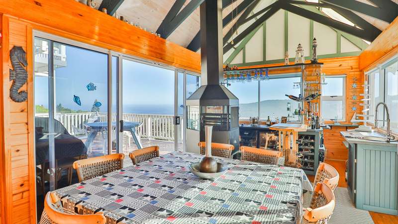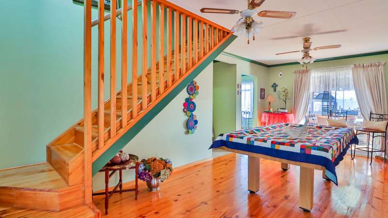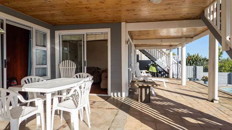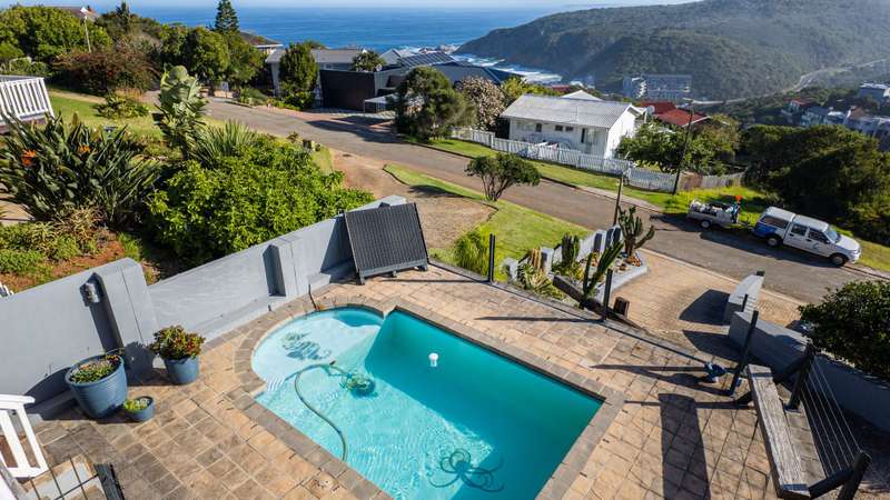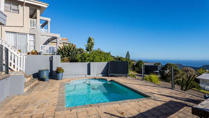 This expansive six-bedroom home offers versatile living across three levels, perfect for family life or investment. Enjoy a private oasis with an azure pool and deck, ideal for entertaining. The ground floor features a double tandem garage, en-suite bedroom, plus a self-contained two-bedroom flat with lounge, kitchenette, and bathroom. The middle floor is made for entertaining — a spacious kitchen with Herold’s Bay views, walk-in pantry, dining room, lounge, guest loo, and a stunning bar area between two sea-view decks. Another sunny bedroom with full bathroom completes this level. Upstairs, the main suite boasts a walk-in closet, full en-suite, and private balcony. A second suite includes its own en-suite, study/hobby space, and balcony with ocean views. Perfect as a family home, holiday getaway, or guesthouse investment — it’s a lock-up-and-go lifestyle with endless potential. Contact us today to book your exclusive viewing!!