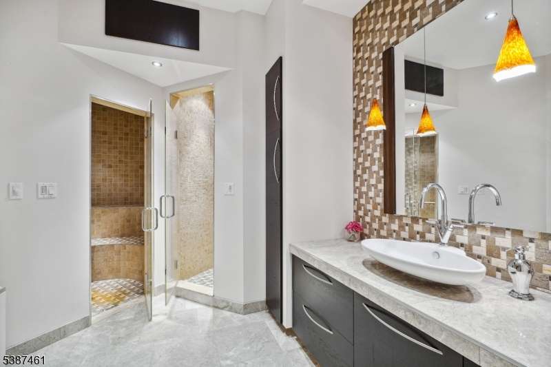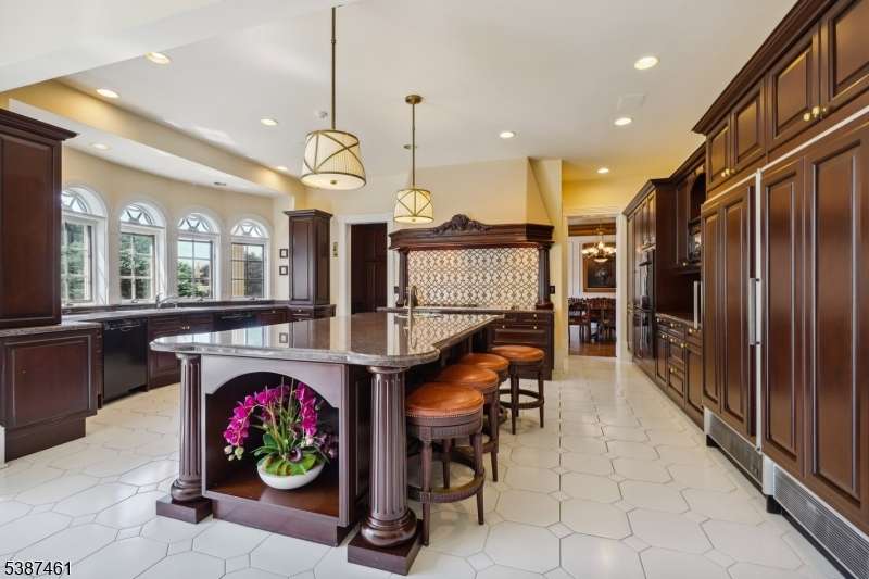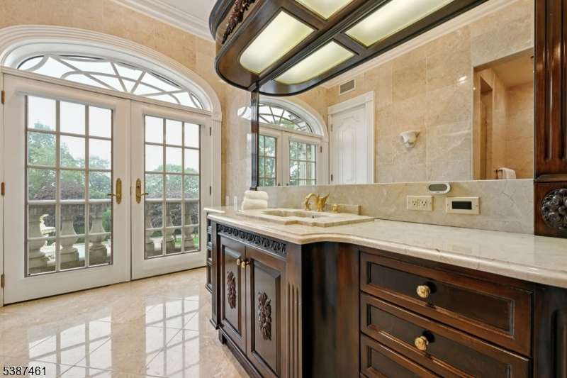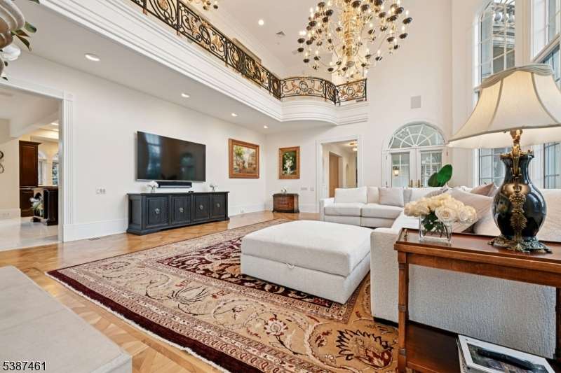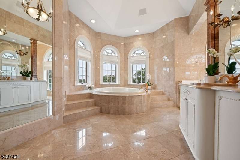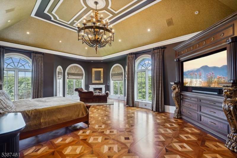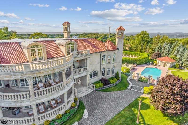 This European masterpiece, a true French Chateau, offers unparalleled beauty and with 14,000 sq ft ideally located on 3.8 acres of meticulously landscaped property at the end of a cul de sac with incredible privacy and spectacular panoramic views of the iconic New York City skyline. Nestled atop one of the highest points in Essex County. Custom built to perfection, this 4-story residence features top of the line resort-like amenities including a heated, gunite pool and spa, a relaxing sun deck, tranquil meditation garden with koi pond, multi-purpose sports court perfect for tennis or basketball and a spectacular home gym with sauna and steam room. Inside this magnificent residence there is a luxurious Master Suite with 2 spa-like baths and 2 custom walk-in closets and private state of the art movie theater, billiards, sports area with media and a stunning pub imported from Europe with leaded and stained glass windows. There is a private balcony with exclusive views of the New York City skyline. This architectural gem, located only 17 miles from New York City, features a limestone exterior, 3 levels of balconies and a grand entrance hall with a double bridal staircase and gilded railing imported from Europe. With tremendous privacy, 8 bedrooms, 9.3 baths, 6 gas fireplaces and French doors throughout the home, opening to front and back verandas on 3 levels, this home is sure to amaze. Your own private oasis! One of the most extraordinary estates in the NY Metropolitan area!